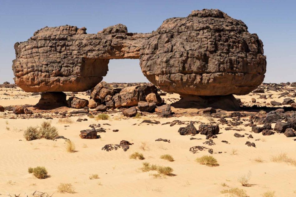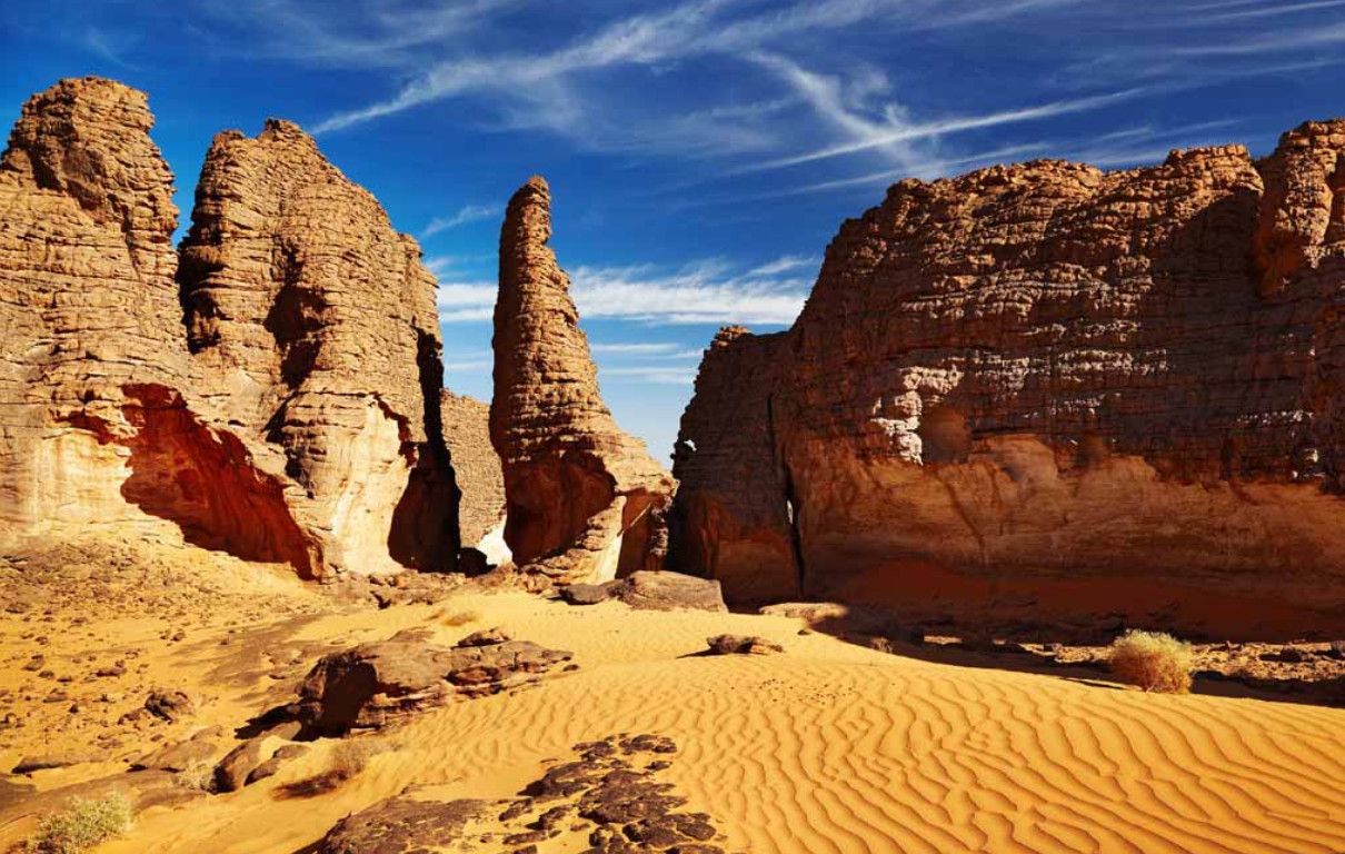 Тассилин-Аджер - песчаное скальное образование, расположенное на обширном плато в пустыне Сахара, на юго-востоке Алжира, на границе Ливии, Нигера и Мали. Плато занимает территорию площадью 72 000 квадратных километров, с 1982 года Тассилин-Аджер внесен в список Всемирного наследие ЮНЕСКО под названием «Национальный парк Тассилин-Аджер». Горная гряда состоит из песчаника, в котором, благодаря многовековому воздействию эрозии, образовалось более 300 естественных каменных арок и других скалистых образований, а также множество пещер. Сейчас пейзаж Тассилин-Аджера напоминает каменный лес, состоящий из скал самых разных форм и размеров. Территорию плато прорезают вади - высохшие русла рек, некогда здесь пролегавших. Плато располагается на высоте от 1150 метров до 2158 метров над уровнем моря, из-за высоты и водоудерживающих свойств песчаника флора здесь несколько богаче, чем в окружающей парк пустыне. Редколесья состоят из находящихся под угрозой исчезновения эндемиков - кипариса сахарского и сахарского мирта. Всемирную известность Тассилин-Аджеру принесли обнаруженные здесь в 1910 году огромные яркие рисунки, изображающие людей, животных и сцены из жизни живших здесь племён. Всего в Тассилин-Аджере было обнаружено 15 000 петроглифов и множество археологических объектов (орудия труда, наконечники стрел, скребки, кости, зернотёрки, каменные ножи) разных периодов истории. Рисунки изображают стада крупного рогатого скота, огромных диких животных (слонов, носорогов, жирафов, гиппопотамов, крокодилов, страусов, антилоп и вымерших видов буйволов) и являются свидетелями эволюции человечества на краю Сахары. Наскальные рисунки Тассилин-Аджера относятся к огромному промежутку истории, начиная с 10 000 года до нашей эры и заканчивая первыми веками нашей эры.