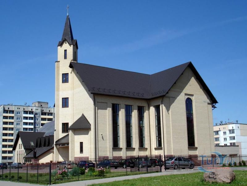 Костел Иисуса Милосердного – кафедральный католический собор в Витебске. Этот храм является одним из самых современных религиозных сооружений города и первым костелом, построенным в Северной столице Беларуси за 124 года. Если посмотреть на историю города, можно узнать, что до революции 1917 года в городе Витебске действовало около 10 католических святынь, большая часть которых была уничтожена советской властью. К началу нового тысячелетия в городе осталось только 3 костела, основным из которых являлся костел Святой Варвары, действующий с 1885 года. Костел интересен тем, что является центральным в Витебской епархии и способен вместить более 1500 верующих. История храма началась в 2000 году, когда на месте будущего собора построили небольшую часовню. В 2004 году территория часовни была освящена для возведения костела, который распахнул свои двери для прихожан спустя пять лет. Освещение костела произошло в октябре 2009 года витебским епископом Владиславом Блином. В 2011 году по личному распоряжению Папы Римского Бенедикта XVI храму Иисуса Милосердного был присвоен статус кафедрального костела. Сегодня здесь действует молодежный религиозно-культурный центр, а также благотворительная организация «Каритас». Главной достопримечательностью храма является памятник знаменитому понтифику Иоанну Павлу II, установленный в честь 30-летия избрания его Папой Римским. Памятник изображает понтифика, благословляющего прихожан крестом. Высота скульптуры около 4,5 метров. На красной гранитной доске выбит герб Папы Иоанна Павла с его именем на польском и белорусском языках. Памятник был подарен белорусским католикам верующими Польши и сразу же стал новой достопримечательностью Витебска.