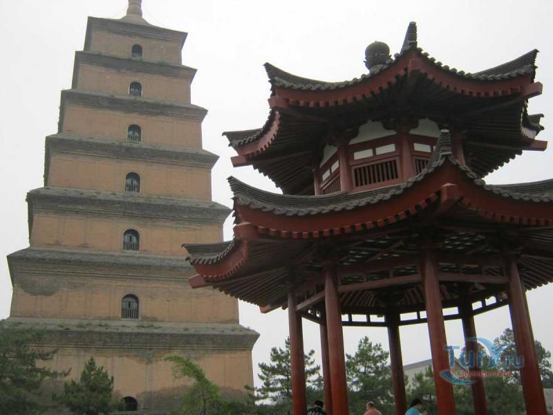 Большая пагода Диких гусей (Даяньта) построена в традициях индийского зодчества в 652 году. Изначально пагода была пятиярусной, однако в 704 году были надстроены еще пять ярусов, три верхних сильно пострадали во время средневековых войн. На сегодня, сохранились семь ярусов пагоды, высотой 64 метра. Название пагоды древняя легенда связывает с Буддой, который, будучи в этих местах, испытал искушение полакомиться мясом диких гусей, но сумел побороть его. Вокруг пагоды расположен буддийский монастырь с большим парком, в парке стоит памятник Сюань Цжану, парк украшен статуями выдающихся китайских поэтов, мыслителей, художников, учёных.