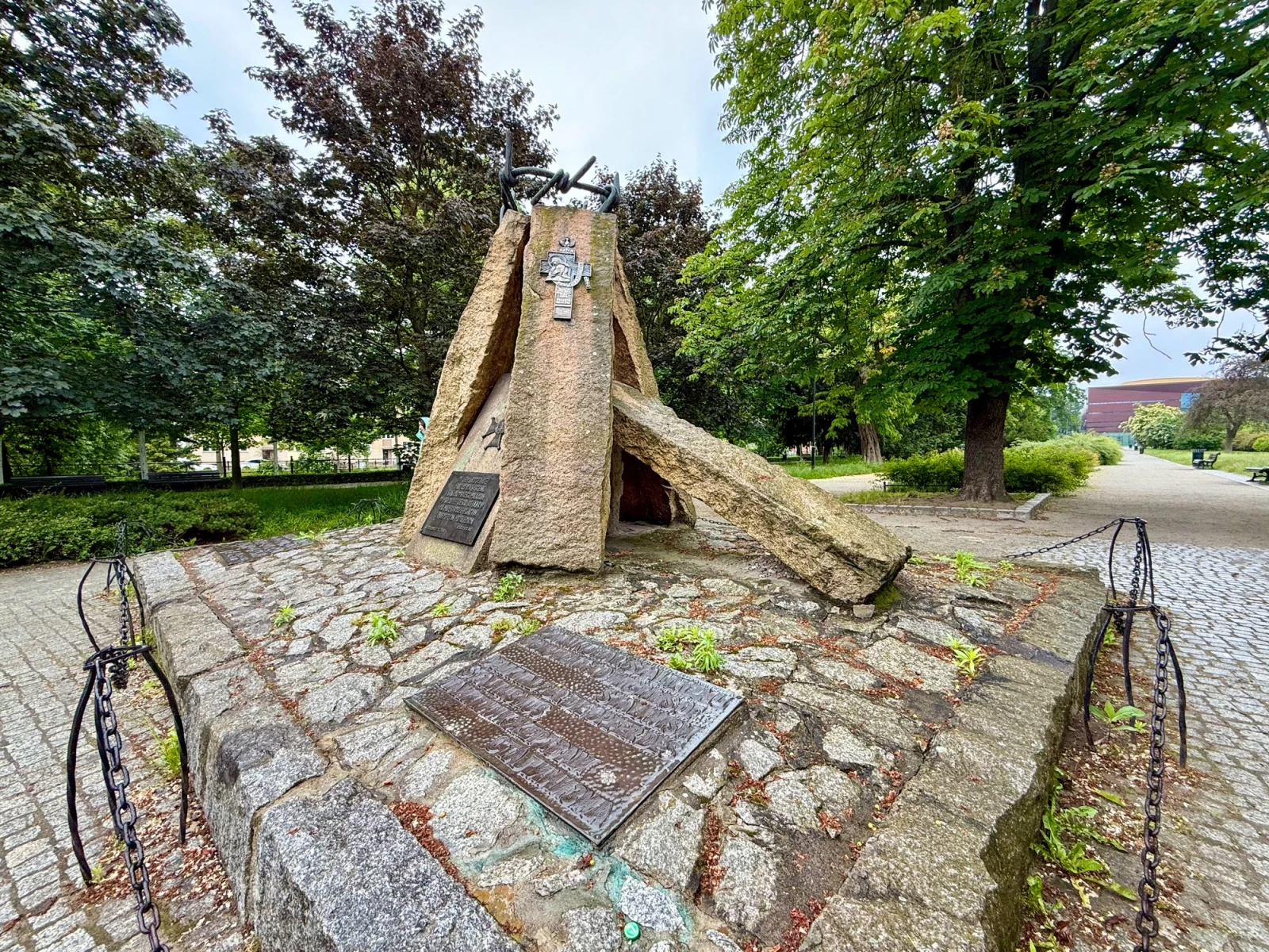 Верх памятника венчает бронзовая корона из терновника, символизирующая страдание и жертву. Рядом размещена дополнительная табличка, посвящённая полякам, заселившим Западные и Северные земли после войны. Мемориал выполняет не только функцию напоминания о жертвах, но и служит предостережением от повторения ошибок прошлого. Его сдержанный, суровый образ подчеркивает масштаб трагедии и важность исторического осмысления тоталитарных эпох.