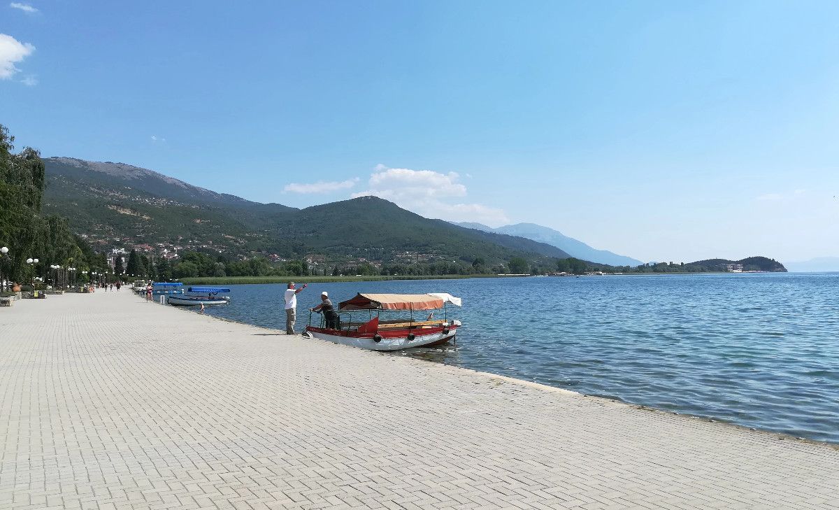 Набережная Охрида – это средоточие рыбных ресторанов и детских аттракционов. Возле набережной не предусмотрено плавание. Дно в этом месте неглубокое, к тому же к волнорезам причаливают туристические катера. Возле главного причала расположено сразу несколько достопримечательностей. Лицом к набережной повернут памятник святому Клименту, составителю первой славянской азбуки - глаголицы. Сразу за ним, в том же направлении, стоит памятник первопечатникам Кириллу и Мефодию.