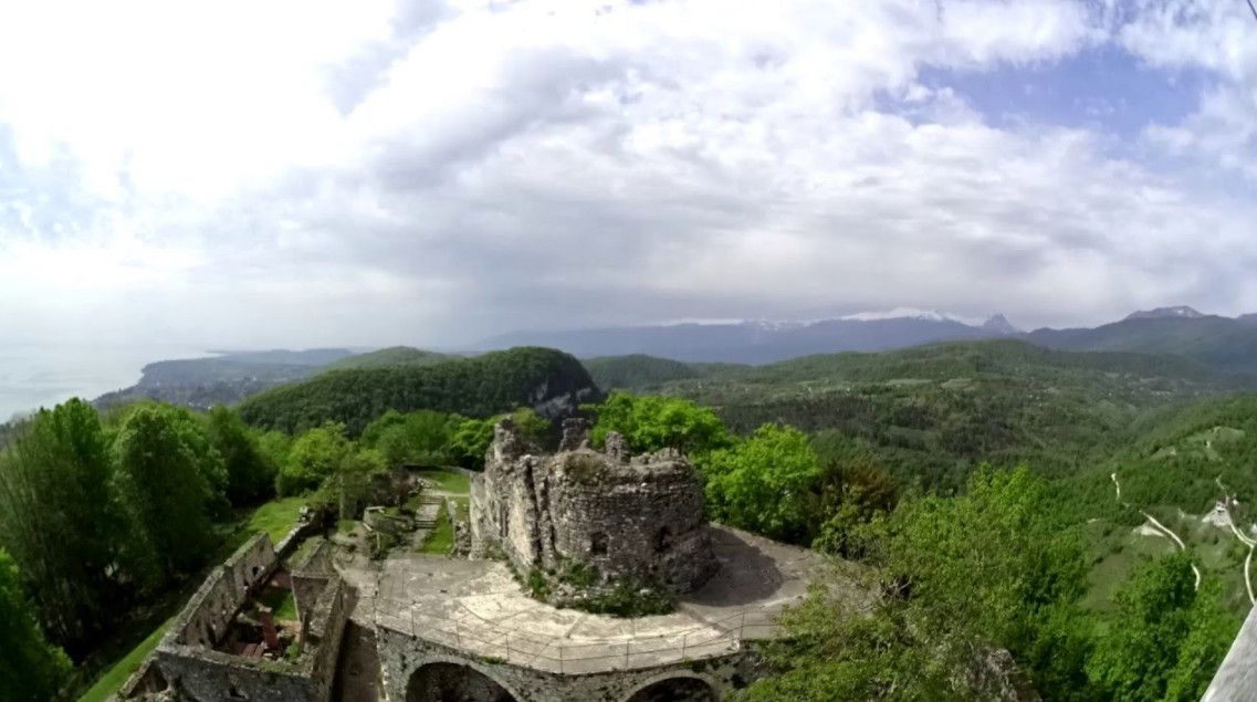 Анакопия, древняя столица Абазгского княжества и Абхазского царства, раскинулась на вершине Апсарской (Иверской) горы. Древнейшая постройка Анакопии – крепость, сооруженная во II-IV веках. В конце VII века была возведена основная линия стен средневековой Анакопии, охвативших территорию размером 450 на 150 метров. С юга, где склон горы был пологим и доступным, стена была укреплена семью башнями - квадратными (в менее доступных местах) и круглыми (в тех местах, где легко могли быть подведены стенобитные машины). Стены крепости были сложены из хорошо отёсанных и пригнанных каменных блоков, ширина некоторых достигает 60 сантиметров. Попасть внутрь крепости можно было только через небольшие ворота, построенные на южной стене из трёх огромных монолитов тёсаного известняка. Наиболее примечательной является западная круглая башня, расположение и форма которой позволяли вести из неё обстрел противника под углом почти в 290 градусов. Главная восточная башня была возведена в середине XI века и стала центральным наблюдательным пунктом цитадели. В VIII веке в крепости обосновался абхазский правитель Леон I. При нём Анакопия стала столицей Абхазского царства, его политическим и духовным центром. На рубеже VIII-IX веков у северной стены цитадели, на самом краю обрыва, был построен храм в честь великомученика Феодора Тирона. На протяжении многих веков в Анакопийском храме хранился нерукотворный образ Пресвятой Богородицы. До наших дней от храма сохранилась лишь часовня. Одним из чудес нагорной крепости считается неиссякаемый колодец с целебной водой, привлекающий тысячи паломников и туристов.