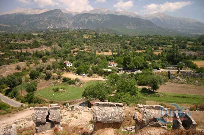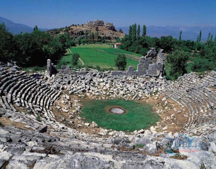 Тлос - древний ликийский город, который расположен в турецкой провинции Мугла, в долине реки Ксанф. Первое упоминание о городе встречается в хеттских хрониках XIV века до нашей эры. Греческий историк и географ Страбон в своих работах упоминает Тлос как один из шести важнейших городов Ликийского союза. Его именовали самой блистательной метрополией Ликийского союза, город был спортивным и военным центром Федерации. За всю историю своего существования Тлос принадлежал разным империям. Даже в сегодняшних руинах древнего Тлоса прослеживаются следы ликийской, римской, византийской и османской империй. В городе находились самые разные сооружения и постройки, оставшиеся от разных культур и цивилизаций. На вершине акрополя находятся остатки турецкой крепости. Ниже акрополя расположены выдолбленные в скале Ликийские гробницы и Гробница Аминтаса в Фетхие, каменные саркофаги и Гробница Беллерофонта, она считается большой и самой красивой в Тлосе. Древний город знаменит руинами византийской базилики и большого стадиона, агоры и бань, а так же театром, который был построен во II веке до нашей эры.