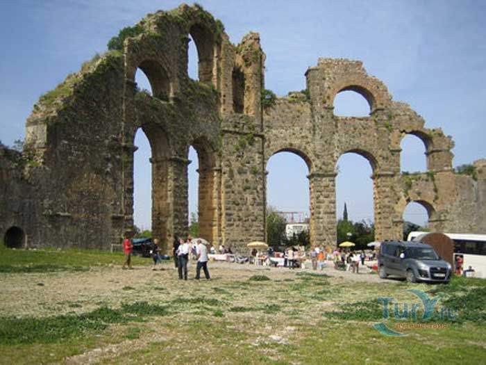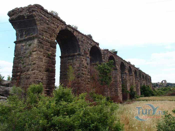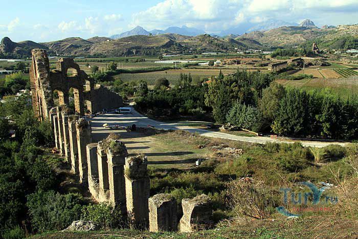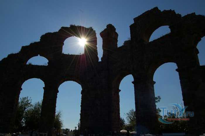 Руины древнего города Аспендос, который прекратил свое существование в VIII веке нашей эры, находятся недалеко от города Серик, в провинции Анталья. Во времена своего расцвета Аспендос был одним из крупнейших торговых, культурных, и политических центров. Город был хорошо обустроен, его амфитеатр, акведук, базилика, агора, гимназиум, некрополь и стадион свидетельствуют о том, что город процветал. Акведук в Аспендосе играл главнейшую роль. Вода – это основной источник жизни, поэтому акведуку было уделено большое внимание. До наших дней от центральной водной артерии города остались лишь фрагменты. Существует легенда о создании акведука и театра в Аспендосе. Царь решил выдать свою дочь - красавицу за архитектора, который построит для города то, без чего город не может обойтись. Два архитектора соревновались за руку Белкис. Так были построены Акведук и Театр в Аспендосе. Царь осмотрел акведук, который ему понравился и пошел смотреть на театр. Только подошел он к театру и вдруг слышит голос: «Будет Белкис моей женой». Царь осмотрелся, но никого рядом не было только внизу на сцене стоял архитектор Зенон. Аккустика в новом театре была совершенна, но и акведук был совершенством. Тогда царь сказал, что разделит дочь пополам, но Зенон тут же отказался от такого раздела. Именно этот отказ и сыграл роль в выборе жениха. Зенон стал мужем Белкис.