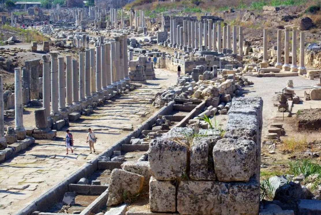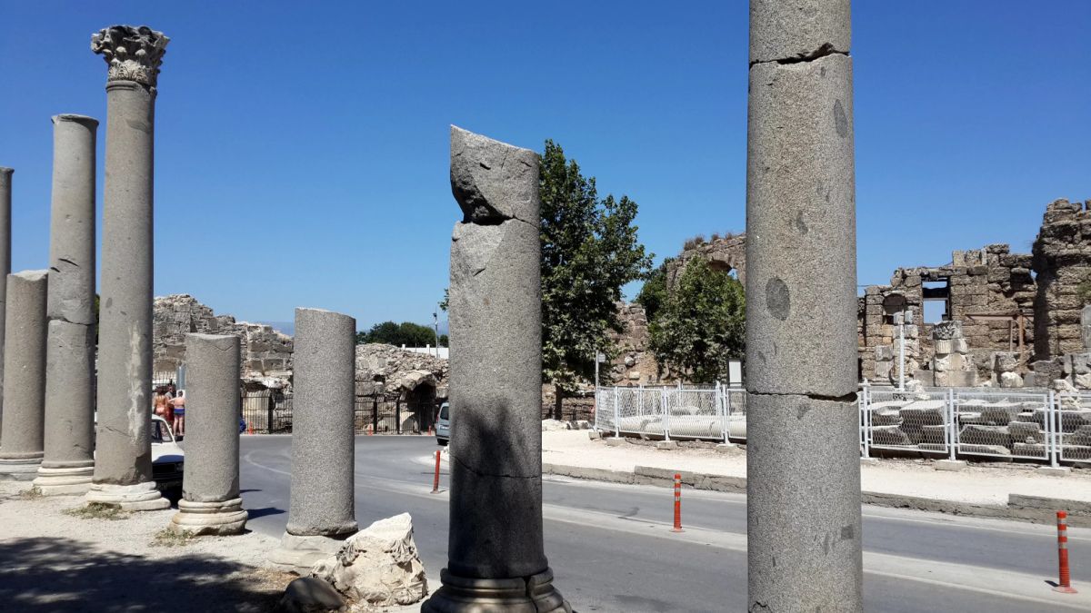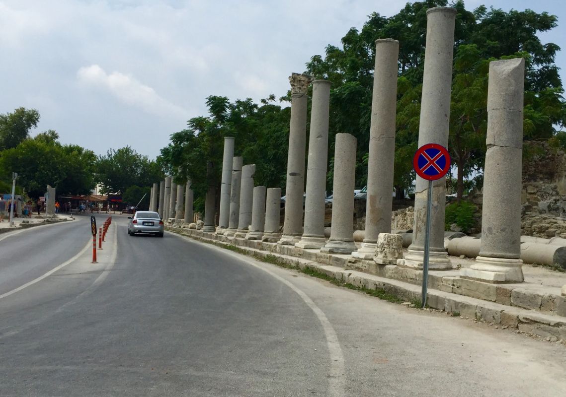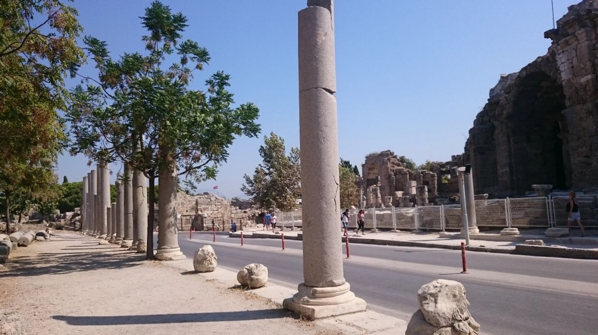 Сиде - это небольшой турецкий городок на Средиземноморском побережье, с очень интересной историей и множеством достопримечательностей. Город славится древними постройками и сохранившимися до наших дней сооружениями византийской архитектуры. Сиде – это настоящая сокровищница турецкой культуры. В число основных достопримечательностей города входят популярные Колонные улицы. В Сиде их было три. Первая из них начиналась у главных ворот Сиде и заканчивалась монументальной аркой у Римского театра. Вторая колонная улица тоже начиналась у главных ворот, но шла в южном направлении. Третья колонная улица носила название «Улица Гавани» и начиналась она за Монументальной аркой и вела на юго-запад до храмов Артемиды и Аполлона. Улицы, украшенные колоннами, вымощенные широкими каменными блоками или декоративной мозаикой, создавали неповторимый величественный путь. Сохранившиеся остатки колонных улиц являются интереснейшим памятником искусства прошлого, олицетворением уникальной древней архитектуры Турции. Колонные улицы напоминают об эпохе роскоши античных времён.