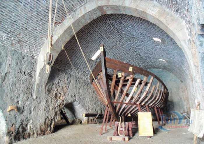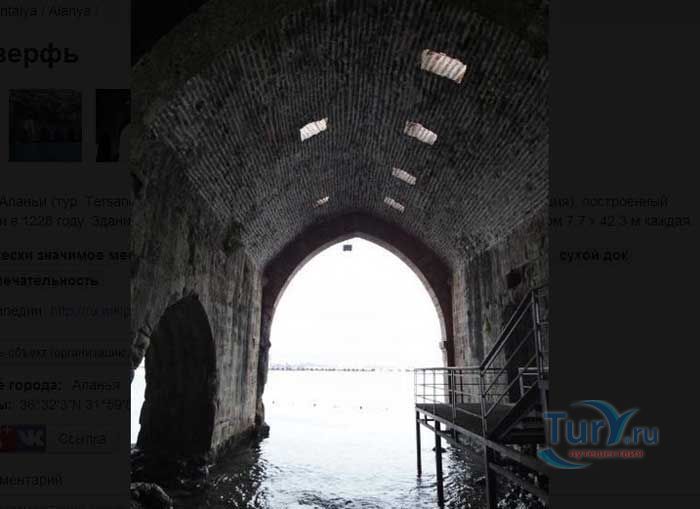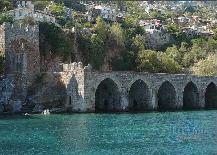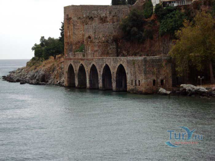 Судоверфь в Аланье была сооружена в 1228 году по распоряжению сельджукского султана Ала-ад-дина Кей-Кубада. Место под судоверфь было выбрано так, чтобы можно было максимально использовать дневной свет. На воротах судоверфи изображен герб султана Ала-ад-дина Кей-Кубада I. Судоверфь в Аланье считается первой судоверфью сельджуков на Средиземном море. Именно после завершения ее строительства султан Ала-ад-дина Кей-Кубада получает титул «Султан двух морей», так как он владел еще одной судоверфью в порту Синоп на Черном море. На территории с одной стороны судоверфи находится месджит – это помещение для молитвы, а с другой - сторожевое помещение. В одном из пролетов можно увидеть старый колодец. На территорию судоверфи можно попасть доплыв на лодке по морю или пройдя вдоль стен Красной башни. Здание судоверфи с пятью пролетами очень красиво смотрится со стороны моря. Надпись на передней двери судоверфи украшена гербом султана Ала-ад-дина Кей-Кубада I. Несколько веков со стапелей судоверфи сходили корабли, ходившие по всему Средиземному морю.