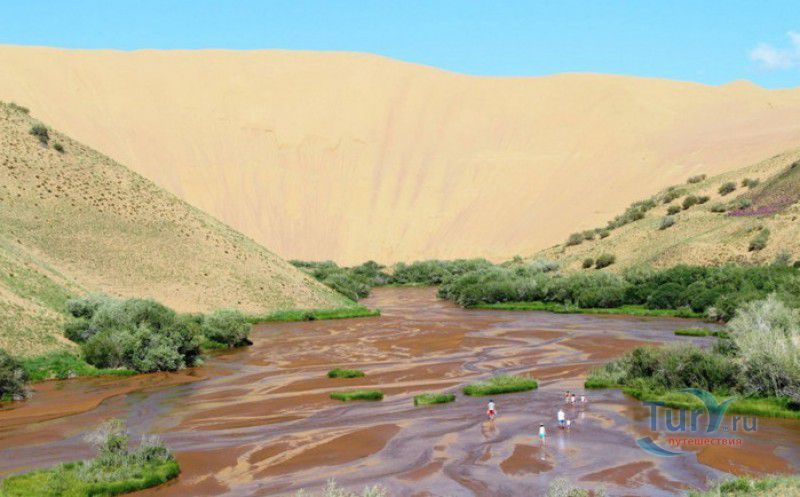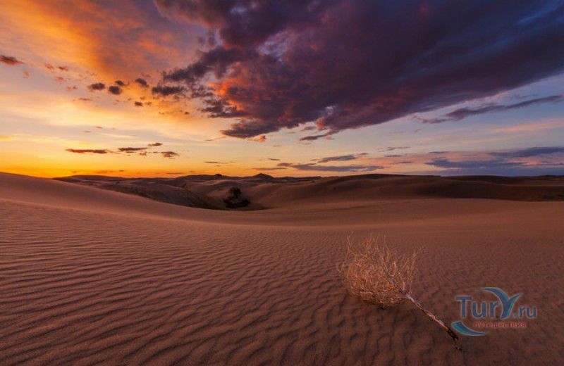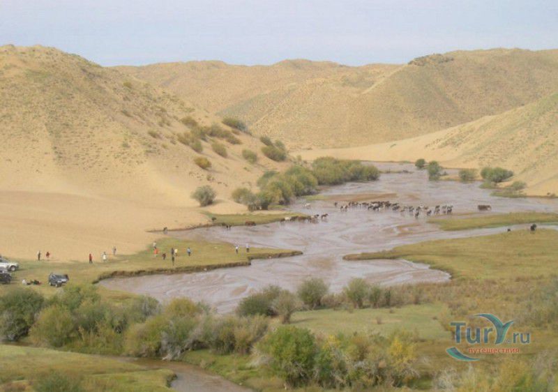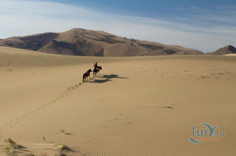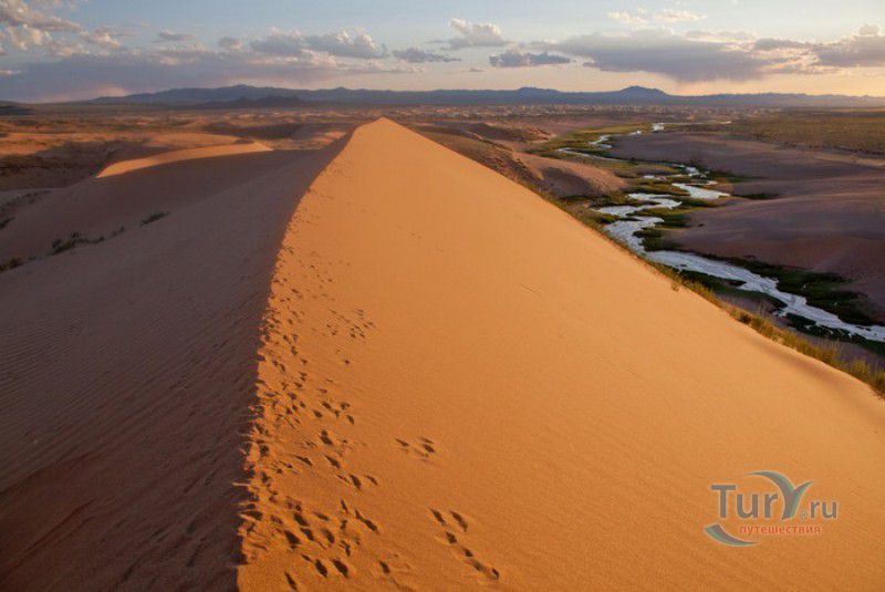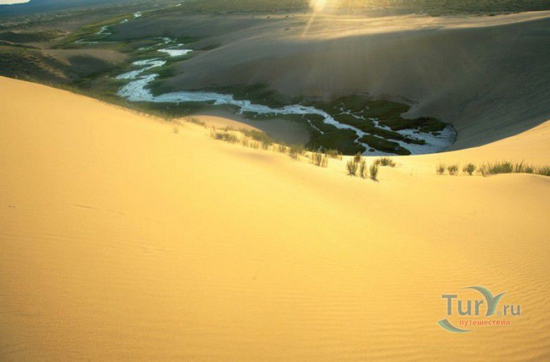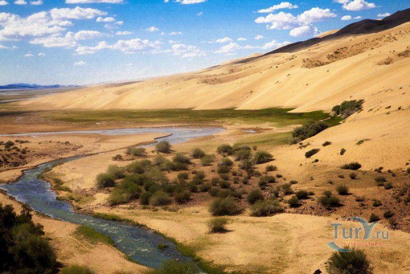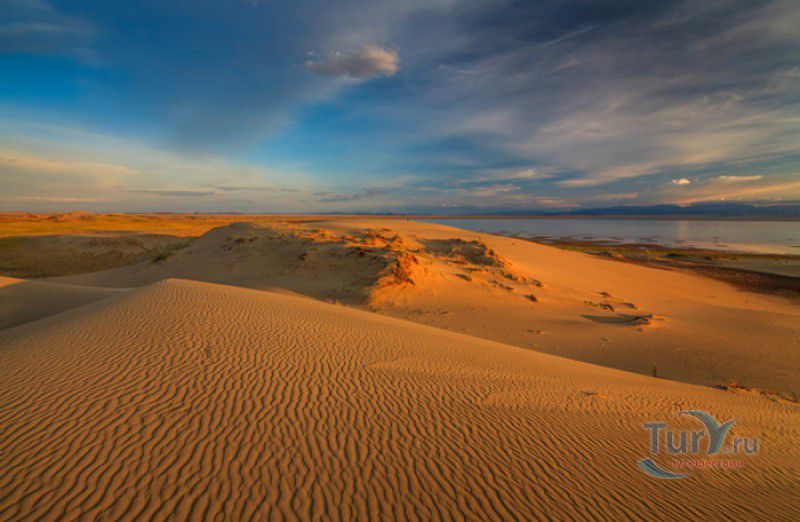 Песчаный Массив Монгол Элс расположен в западной части Монголии, в провинциях Говь-Алтай и Завхан. Пески Монгол Элс покрывают большую территорию, они берут начало у восточного берега солёного озера Дурген-Нуур и тянутся почти на 300 километров с юго-востока на северо-запад вдоль русла реки Завхан. Площадь одного из самых крупных песчаных массивов Монголии - 2724 квадратных километра, средняя ширина - 25-30 километров. Внутренние районы песчаного массива из-за своей труднодоступности являются естественным заповедником-резерватом, где до сих пор встречаются дикие двугорбые верблюды, популяция которых в последнее время стремительно сокращается. Огромные песчаные дюны имеют заострённые верхушки конической формы, склоны песчаных насыпей напоминают безбрежное песчаное море, "волны" которого под воздействием ветра постоянно меняют своё направление и форму. На северо-западной оконечности Монгол Элс, в излучине реки Завхан, расположены небольшие озёра Эрээн-Нуур и Дуруу-Нуур, берега которых покрыты густыми зарослями тамариска. Добраться в Монгол Элс можно только на внедорожнике, большинство участков песчаного массива непроходимы для транспортных средств, но туристы едут в Монгол Элс, чтобы увидеть безбрежные золотые пески на фоне бирюзового неба, невероятно красивые закаты и ощутить покой и величие этих мест.