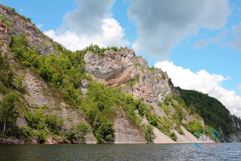Юмагузинское водохранилище находится на территории Национального парка Башкирия, в верховьях реки Белая. Водохранилище протяженностью 57 километров растянулось в пределах Кугарчинского района республики. История Юмагузинского водохранилища началась в 1998 году со строительства гидроэлектростанции в узком горном каньоне реки Белая. Она стала одним из самых спорных гидротехнических сооружений, построенных в республике. Строительство сопровождалось протестами местных жителей и экологов, коррупционными скандалами. В 2003 году началось заполнение водохранилища, в результате чего многие природные достопримечательности оказались затопленными, например, пещера-пропасть Сумган-Кутук. Под затопление попала часть когда-то общесоюзного сплавного маршрута по реке Белой. В 2007 году строительство инженерного сооружения было полностью закончено. Плотина Юмагузинской ГЭС имеет длину 605 метров и высоту 65 метров. Средняя глубина водохранилища - 26 метров, а максимальная - 63 метра. Средняя ширина составляет 300 - 400 метров. К счастью, несмотря на все разногласия, водохранилище остается одним из самых красивых мест Башкортостана. Его узкая горная долина практически на всем протяжении с обеих сторон окружена высокими и очень красивыми скалами причудливой формы с не менее интересными названиями: "Митрошкин камень", "Азан-Таш", "Сундук-Таш", "Крейсер" и другие. Самая необычная скала - "Чертов Палец". Она представляет собой вертикальный каменный столбец, отделенный от скалы, по своим очертаниям напоминающий палец. В скале "Крейсер" находится пещера "Театральная". Во время плавания также можно увидеть скалу "Вождей" или "Классиков". В 1979 - 80 годах местные художники Татьяна и Булат Каримовы нарисовали на ней Ленина, Маркса и Энгельса. К числу наиболее интересных мест водохранилища также можно отнести и остров Сакасска. Это гора, которая в результате наполнения водохранилища, была окружена водой и превратилась в остров. Отсюда можно попасть в знаменитый Сумган-Кутукский карстовый район, богатый многочисленными пещерами.