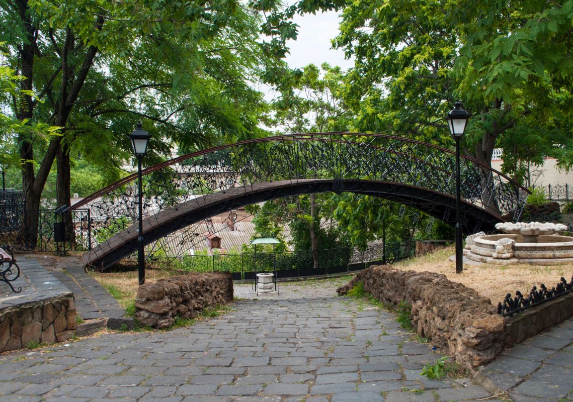 В "Уголке старой Одессы" расположили мост, который своей изысканностью отражает тонкую романтику и нежность архитектуры Одессы середины XIX века. Но у него есть еще и другое предназначение, кроме внешней красоты и создания общей атмосферы "Уголка". Этот мостик носит тайное название "Мост невест". Есть поверье, что если незамужняя девушка перейдёт по мосту с левого конца на правый, то обязательно в ближайшее время выйдет замуж! Скажу Вам честно, побегать по мостику любят и замужние дамы с преступной целью сменить "свою лучшую половину" на "просто новую половину". Судя по возрастающему количеству разводов и новых браков в городе любви-Одессе, этот метод работает! :) Не упустите и Вы уникальную возможность! ;) Ещё был забавный случай... Пришли мы с группой в "Уголок", я говорю о его истории, колодце, беседке, почти перешла к мостику, как вижу, что два мужчины уже на него взобрались и правильно так, слева направо его переходят. А я в этот момент закончила рассказывать легенду. Вся группа начинает громко смеяться и вкратце им пересказывает суть. Мужчины в шоке, смотрят друг на и друга и задают мне вопрос на твёрдую пятёрку: "И кто из нас теперь на ком должен жениться, кто из нас невеста?" Ребята, если вы это читаете, помните: вы - лучшие!