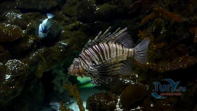 Самая интересная часть сооружения — океанариум: диаметр — 36 метров, глубина — 5 метров, 5 млн. литров воды, 4 тысячи видов рыб, два подводных туннеля длиной до 86 метров. Прогулке по туннелям очень способствует движущаяся дорожка.