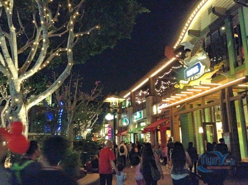 Даунтаун Дисней расположен между 2-мя парками Диснея - Disneyland Park и Disney California Adventure Park. Здесь, прогуливаясь вечером по оживленному променаду, можно совершенно бесплатно посмотреть захватывающую ночную развлекательную программу, поужинать в одном из многочисленных уличных кафе, посетить уникальные магазины и прикупить себе на память Диснеевские сувениры или оригинальные вещи, которых больше не увидите нигде. Поесть в храме тропического леса, который буквально кишит экзотическими животными, посмотреть большую игру по внутреннему вещанию студии ESPN, поймать живой концерт последней музыкальной сенсации и открывать новые замечательные сюрпризы на каждом углу!