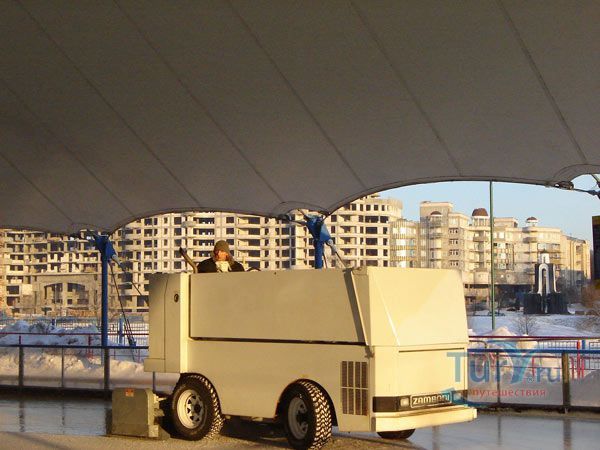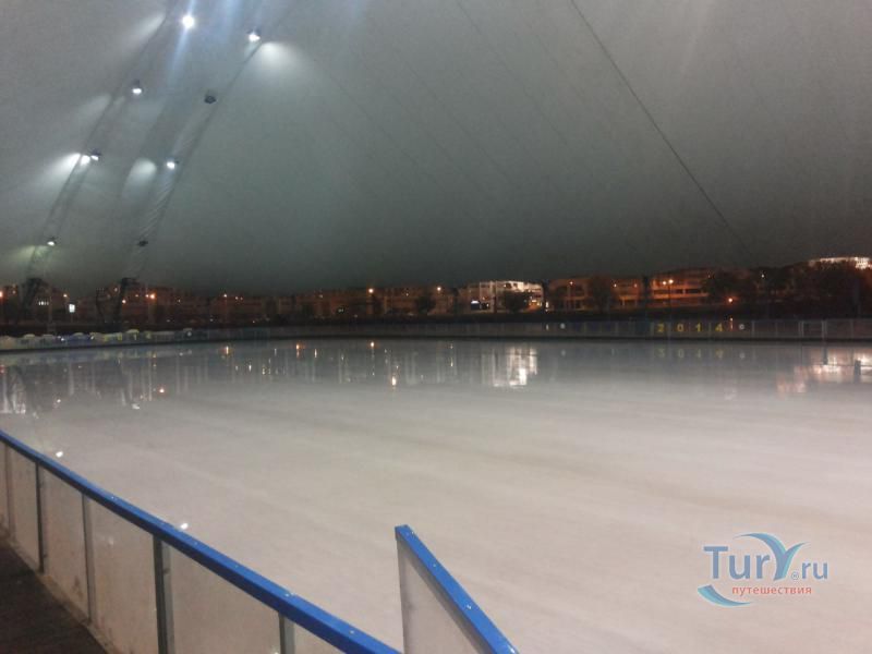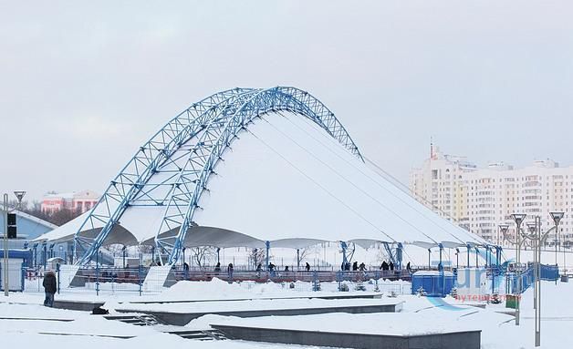 Ежегодно в Минске возле Дворца спорта в зимний сезон открывается мобильный каток. Во время сеанса одновременно на площадке могут находиться 200-230 человек. Камеры хранения предоставляются бесплатно при наличии чека на оплату сеанса катания. На катке работают биотуалеты, по периметру расставлены скамейки, от места переодевания до ледовой площадки уложено резиновое покрытие, установлены информационные щиты, обеспечено музыкальное и звуковое сопровождение. В прокате находится около 700 пар размерами от 28-го (детского) до 46-го. Этого достаточно, чтобы обеспечить всех желающих на несколько сеансов. Для проката коньков нужен документ в залог. Размеры мобильного сезонного катка составляют 70 на 40 метров. На катке посетителям рекомендуют кататься против часовой стрелки. Это мировая практика.