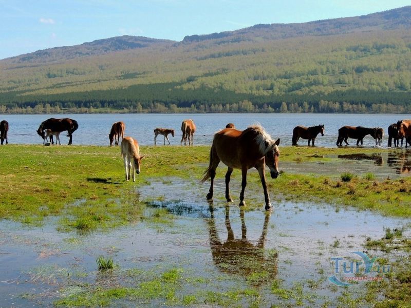 Озеро Талкас расположено у западного склона горного хребта Ирендык. Озеро находится в узкой межгорной впадине на высоте 548,5 метров над уровнем моря. Озеро вытянуто с северной части к южной на 4 километра, с шириной до 1,5 километров. Наибольшая глубина составляет 12 метров. У восточного берега на глубине 8 - 10 метров залегает сапропель. Озеро является очень древним, оно образовалось вследствие вулканических процессов. На хребте неподалеку от озера располагается гора, которая является остатком потухшего вулкана. На вершине этой горы есть кратер. Вдоль берега на поверхность выходят вулканические породы - порфириты. Ближе к западным берегам возвышается скалистый небольшой остров, который сложен порфиритовой породой, на дне озера имеются скалистые выступы из порфирита. Северный и южный берега пологие, местами заболоченные, западный и восточный - более крутые. На южном берегу располагается деревня Исяново. На западном берегу озера Талкас размещаются различные детские лагеря и базы отдыха. Восточный берег местами скалистый, покрыт лесами из ольхи, березы, лиственницы. В озере водятся рак, карп, карась, щука, лещ, густера, окунь, сорога, плотва. По берегам гнездится чернозобая гагара, турпан.