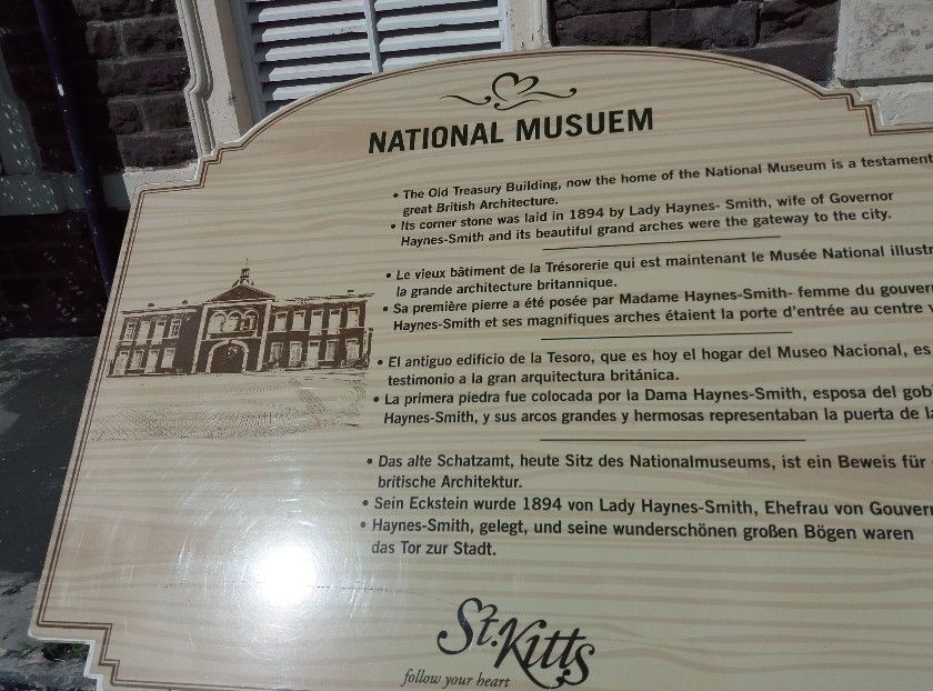 Национальный музей National Museum of Saint Kitts расположен в городе Бастер недалеко от Морского порта, на набережной города. Это прекрасно сохранившееся старое колониальное здание, бывшее Здание казначейства, построено в 1894 году. В 2002 году в старом здании казначейства состоялось официальное открытие Национального музея Сент-Китса. Открытие состоялось благодаря полной поддержке и поощрению со стороны Национального фонда St. Christopher National Trust (SCNT), в ведении которого оно сейчас и находится. Возведенное в 1894 году здание на протяжении десятилетий служило в качестве шлюза для города Бастер - оно являлось воротами на остров, потому что его арки были точками входа со стороны пирса для всех пассажиров, прибывающих морским путем. На протяжении многих лет здесь находилось множество министерств и ведомств правительства. Сегодня это один из важнейших исторических и архитектурных памятников острова. Национальный музей предлагает обзор культурного наследия государства Сент-Китс и Невис. В 2008 году экспонаты музея были расширены и перестроены, добавлены новые в память 25-ти летия независимости острова.