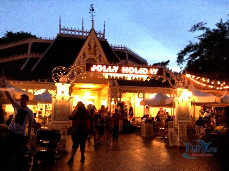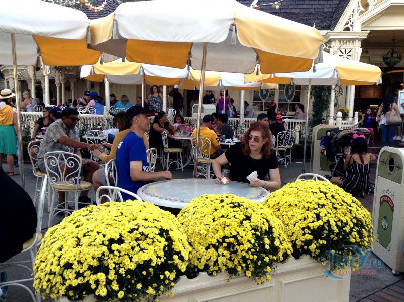 1. Мейн-стрит (Main Street) построена в стиле типичного американского города образца конца XIX века. Самые любимые публикой аттракционы - игровые автоматы и "Ключевой Момент" с мистером Линкольном. Здесь множество зон для фото, много ресторанов, кафе и сувенирных магазинов.