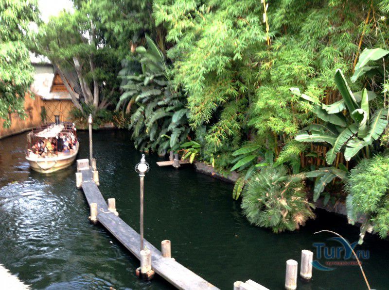 8. Страна Приключений (Adventureland) - здесь можно испробовать "Круиз по Джунглям" и "Эчентед Тики Рум". Наибольшей популярностью пользуется железная дорога по мотивам приключений Индианы Джонса.