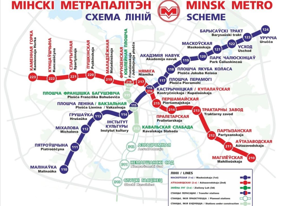 Метрополитен - наиболее комфортабельный, надежный, экологически чистый вид городского пассажирского транспорта с достаточно высокой скоростью перевозки пассажиров. Является четвёртым по величине пассажиропотока, шестым по числу станций в СНГ и единственным в Беларуси метрополитеном. Начинает свою работу в 5 час. 30 мин. и заканчивает в 1 час ночи. Интервалы движения поездов в час «пик» составляют 2,0 минуты на 1-й и 2-й линиях метрополитена. В настоящее время эксплуатационная длина двух линий Минского метрополитена в двухпутном исчислении составляет 35,42 км с 28 станциями, из них 14 станций расположены на 1-й (Московской) линии и 14 на 2-й (Автозаводской) линии метрополитена. В будущем Минский метрополитен будет состоять из четырех линий общей протяженностью 77,1 км и насчитывать 58 станций. На всех станциях минского метрополитена работает сотовая связь GSM/3G операторов «Velcom», «МТС», «Life :)» .