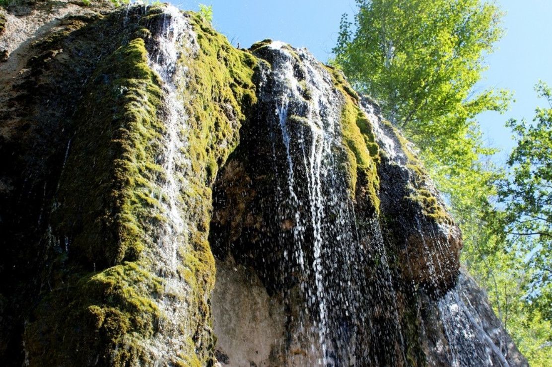 Водопад находится с южной стороны скалы Плачущий камень, которая круто спускается к Инзеру. Падающая с шестиметровой высоты вода струится по камням, поросшим изумрудно-зеленым мхом, прямо в реку Инзер. С северной стороны скала полога и покрыта степной растительностью.