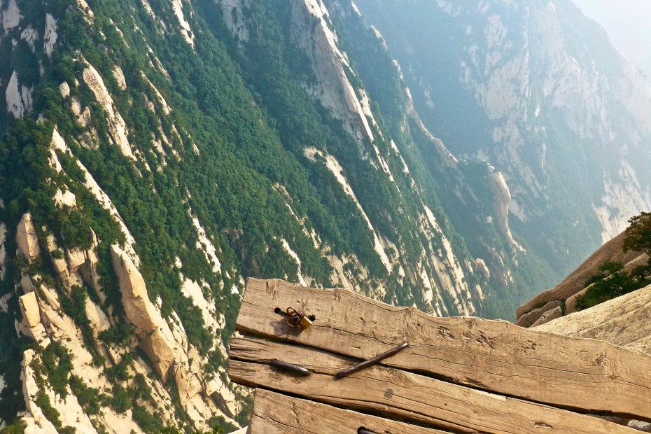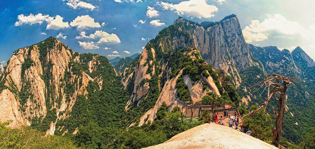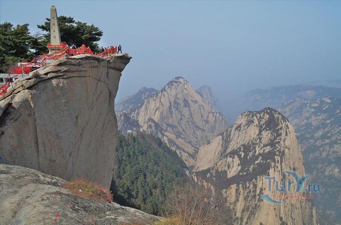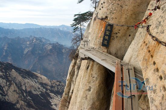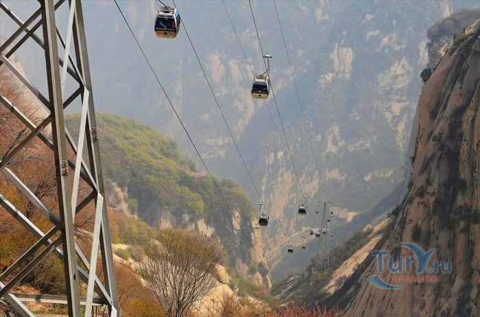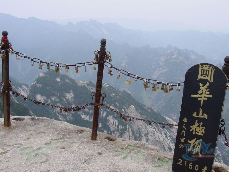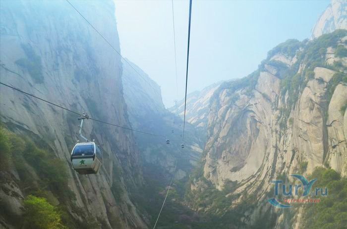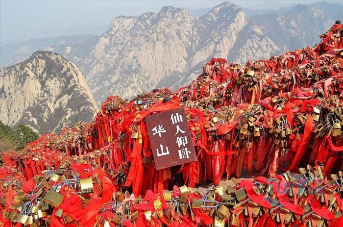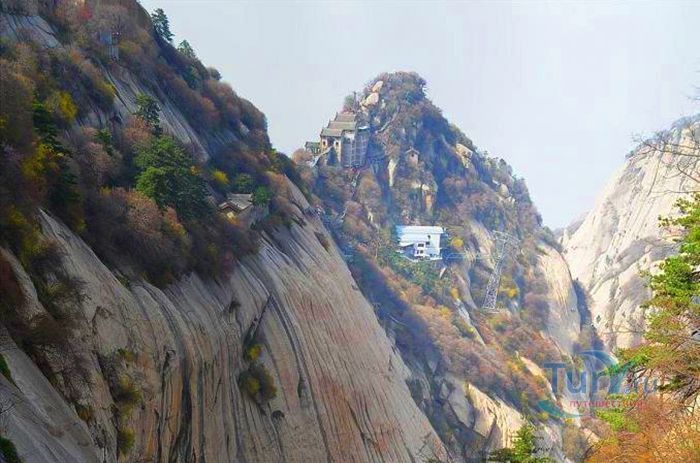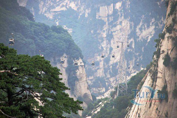 Для любителей экстрима предлагается путешествие на Каменный цветок Китая - гору Хуашань. Она расположена в 120 км к востоку от Сианя и знаменита своими величественными скалами, крутыми тропами, но прежде всего — своими фантастически великолепными видами. Это одна из пяти священных гор Китая, и здесь пролегает самый экстремальный туристический маршрут в мире. Гора Хуашань имеет пять вершин: Южная, Северная, Западная, Восточная и Центральная, из которых Южная вершина со своими 2155 метрами самая высокая. Все пики кажутся примерно одинаковыми и напоминают по форме лепестки цветка. Подняться на гору можно несколькими способами. С Западного входа вы сможете увидеть множество даосских храмов. С Восточного входа прийдеться пробираться по крутой каменной лестнице. И самый безопасный способ это подняться на фуникулере, он был здесь установлен в середине 90-х годов. Обычно люди выбираю канатную дорогу, которая поднимается на Северную вершину. А далее они выбирают либо Западный либо Южный пик. Большинство предпочитает Западный пик, так как этот маршрут довольно безопасен, и вид на Западную вершину просто ошеломляющий, и он еще грандиозней при совершенно ясной погоде.