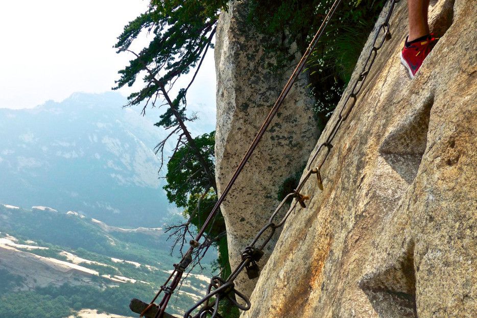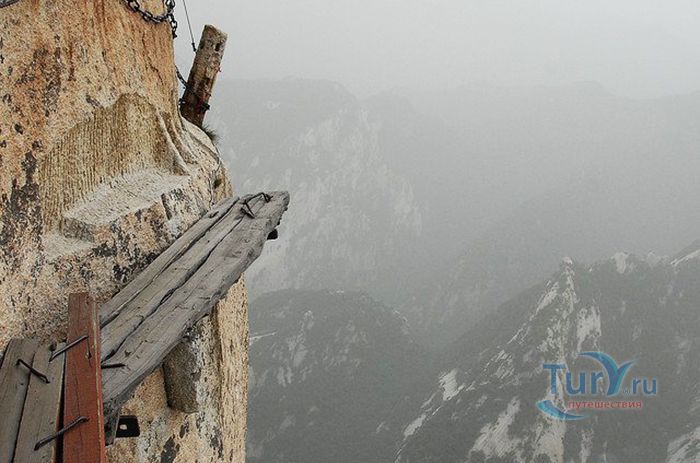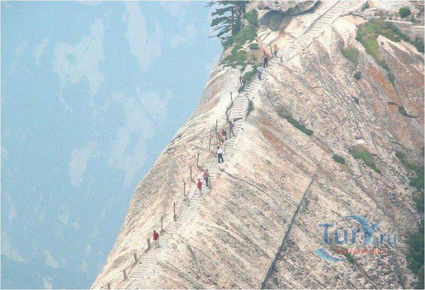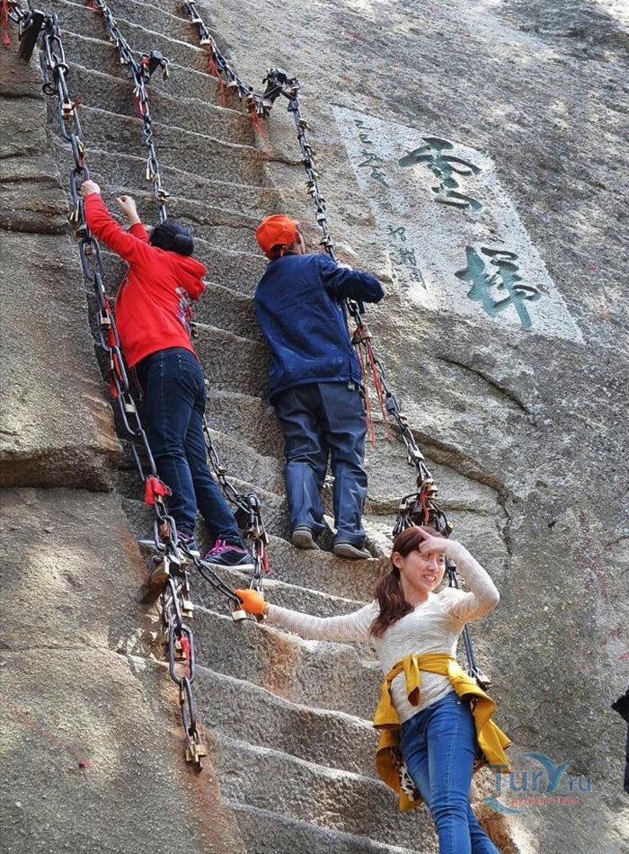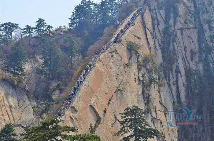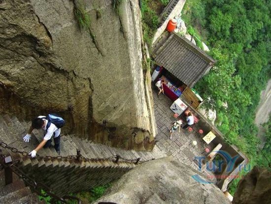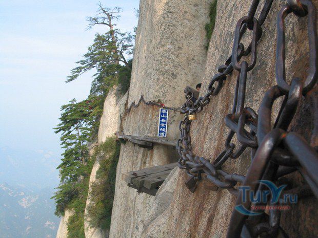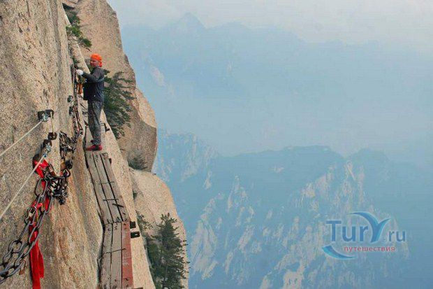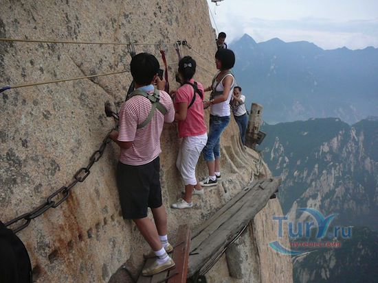 На горе есть рестораны, а также отели, в которых можно переночевать, если вы хотите покорить все вершины. А вот путешествия на Южный пик, не для слабонервных. Да полюбуйтесь сами, только железные цепи прикрученые к скале и деревеные досточки под ногами, не случайно эту тропу называют "тропою смерти". Наградой служит ошеломляющий панорамный вид на окружающие горы. Ранее восхождение на гору осуществлялось по религиозным мотивам, но в настоящее время гора становится самым излюбленным туристическим маршрутом Китая.