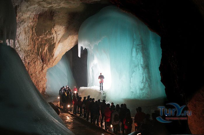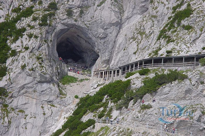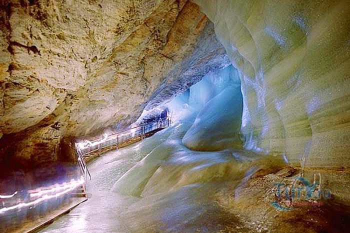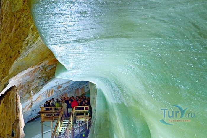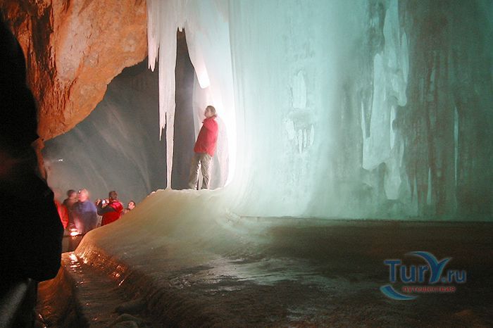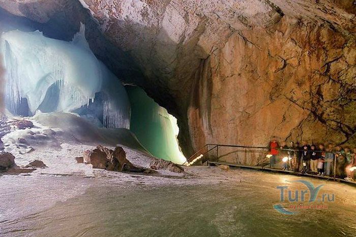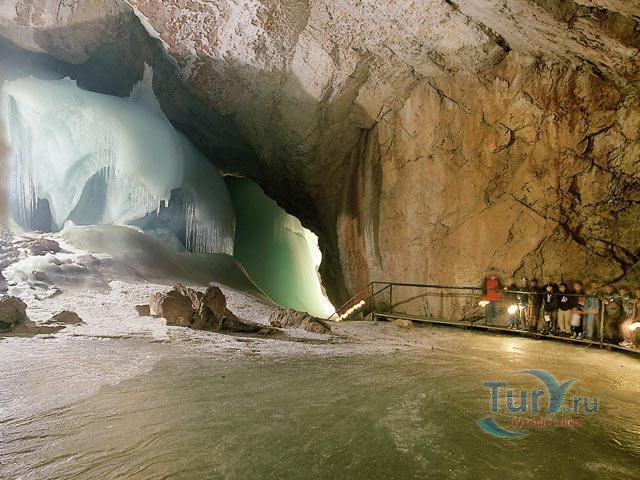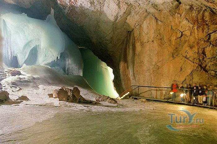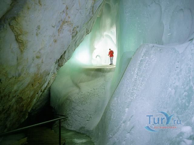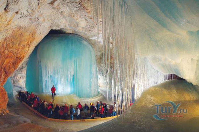 Королевство ледяных великанов - Ледяная пещера Айсризенвельт в Верфене, расположена в Австрийских горах, вблизи маленького городка Верфен, в 40 км к югу от Зальцбурга. Это уникальное природное диво представляет собой ледяные лабиринты, протянувшиеся на 42 километра. Хотя для посещения туристов открыто несколько километров, но это путешествие удивит даже очень искушенного пещерного исследователя. Ледяная Пещера Айсризенвельт - самая большая в мире пещера, в которой лёд сохраняется круглый год, расположена на высоте 1600 метров. Подняться к пещере можно либо на канатной дороге, либо пешком по очень крутому подъёму (без канатной дороги). В любом случае вы можете лицезреть потрясающие виды Австрийских гор. Хорошая физическая форма и тёплая одежда - это то, что вам безусловно понадобиться в этом путешествии. В пещере вы можете увидеть причудливые ледяные изваяния, фигуры всевозможных размеров и форм, застывшие ледяные водопады, гроты и замёрзшие озёра - всё, что может изумить своим великолепием. Добро пожаловать в Айсризенвельт - чарующее царство Ледяных Великанов!