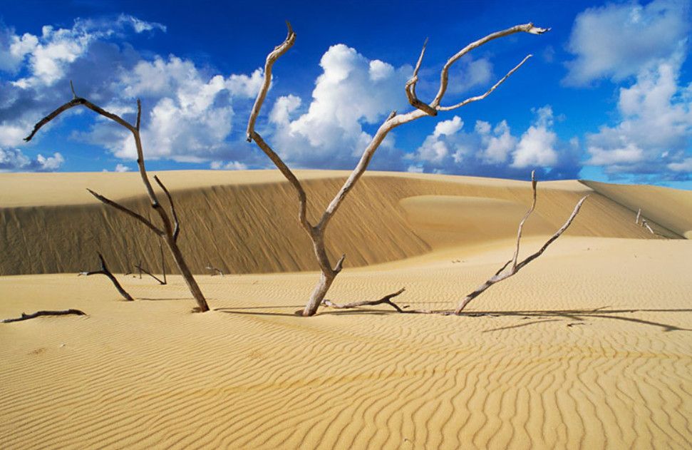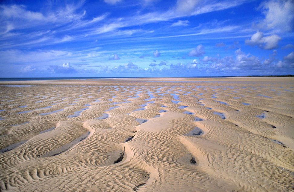 Остров Фрейзер - ёще один уникальный уголок Австралии, расположен в Коралловом море, относится к штату Квинсленд. Это самый большой песчаный остров в мире. Весь он состоит из песчаных разноцветных дюн, которые образовались около 400 тысяч лет назад и возвышаются до 240 метров. Остров славится пресноводными озёрами (Висячие озёра), их в этой местности насчитывается более сорока. Самое крупное из них Lake Boemingen площадью 200 га. В западной болотистой части острова произрастают мангровые леса. Восточное побережье украшает пляж из белоснежного песка длиной около 100 км. В северной части сохранились влажные экваториальные леса, практически в нетронутом виде. Животный мир острова тоже очень интересен. В мелких озёрах водятся пресноводные черепахи, на суше встречается дикая собака Динго. В 1992 остров Фрейзер включён в список Всемирного наследия ЮНЕСКО как неповторимый природный памятник. Туристы на острове могут отправиться в путешествие по тропическим лесам растущим из песка, посетить многочисленные и очень тёплые и красивые висячие озёра, либо исследовать обломки корабля "Махино", или просто наслаждаться мистикой разноцветного песка играющего на солнце.