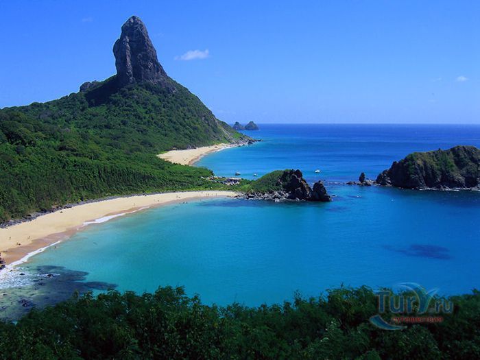 Фернанду-ди-Норонья – красивый архипелаг вулканического происхождения, расположен в 354 километрах от северо-восточного побережья Бразилии, относится к штату Пернамбуку. Архипелаг состоит из 21 острова, а также маленьких островков и скал. Общая площадь архипелага составляет 26 квадратных километров. Самый большой остров площадью 17 квадратных километров, его самая высокая точка достигает 756 метров над уровнем моря. Информация относительно того, кто открыл этот архипелаг, носит несколько противоречивый характер. Архипелаг был открыт в 1501 году либо в 1502 году, португальской экспедицией Лемуша либо Коэльу, в которой принимал участие Америго Веспуччи. Назван он в честь богатого спонсора экспедиции Фернанду де Нороньи. Очень красивые пейзажи, дикая природа, золотистые песчаные пляжи, а также богатый мир подводной фауны привлекают сюда множество любителей дайвинга и сёрфинга. Остров славиться большим количеством эндемичных видов животных. В чистейших прибрежных водах водятся акулы, дельфины, мурены, скаты и многие другие обитатели подводного мира. В 2001 году архипелаг Фернанду-ди-Норонья был включён в список Всемирного наследия ЮНЕСКО.
