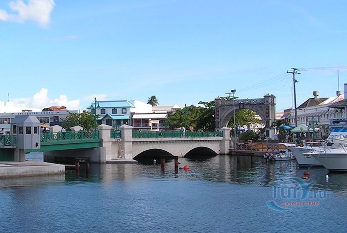 Исторический центр Бриджтауна и Гарнизон – старая часть столицы Барбадоса, которая является образцом британской колониальной архитектуры на островах Карибского моря. Исторический район столицы хорошо сохранился, несмотря на то, что строился в период с 17 по 19 столетия. Бриджтаун расположен на двух берегах реки Конституция и название города в переводе звучит как Город-мост. Река разделяет исторический центр на одном берегу которого находится Площадь Национальных Героев, а на другом Площадь Независимости. Второе название Площади Национальных Героев – Трафальгарская Площадь. Местное население рассказывает, что она является точной копией Трафальгарской Площади в Лондоне. Вокруг обеих площадей сконцентрировано большое количество зданий колониальной эпохи. На Площади Национальных Героев находится памятник Нельсону, стоит здание парламента с часовой башней, построенное в 1871, собор Святого Михаила и здание синагоги, построенное в 17 веке. На другой стороне реки, на Площади Независимости вы можете увидеть памятник первому премьер-министру страны Эрролу Бэроу и Арку Независимости. Исторической составляющей города является военный городок Гарнизона Святой Анны, находящийся в пригороде Бриджтауна. На территории Гарнизона находится Музей Барбадоса, в котором экспонируются редчайшие материалы истории острова и всей Вест-Индии. В Гарнизоне нужно обратить внимание на форт Сент-Энн, построенный в 1705 году, башню Мейн-Гард, постройки 1803 года, здания казарм и другие интересные объекты. Гарнизон служил местом дислокации британской армии, на его территории выставлено большое количество артиллерийских орудий, самое старое из которых отлили в 1620 году. Гарнизон Святой Анны входит в список всемирного наследия ЮНЕСКО. Город Бриджтаун слывет чистым, комфортным городком с множеством разноцветных домиков. В Бриджтауне много хороших отелей, ресторанов и увеселительных заведений.