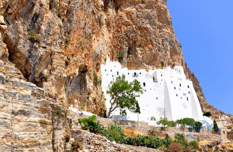 Монастырь Богородицы Хозовьотиссы был построен на восьми уровнях на вертикальном фасаде скалы, причем ширина постройки не превышает 5 метров. Согласно преданию, монастырь был основан в византийский период, во время иконоборчества (VIII-IX века) - согласно существующим представлениям, икона Пресвятой Богородицы чудесным образом попала на остров Аморгос из города Хозова в Палестине. По другой версии, монастырь был основан Алексеем Комниным в 1088 году. Икона Пресвятой Богородицы находится в католиконе монастыря. В ризнице выставлены многочисленные церковные реликвии, такие, как сигиллы, Евангелия, рукописи и облачения.
