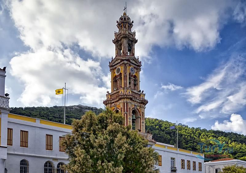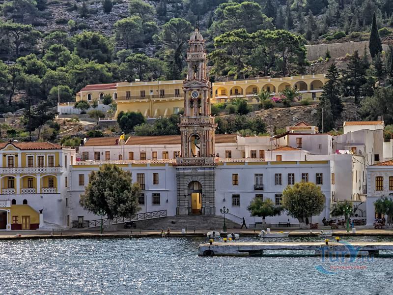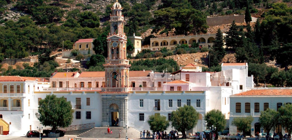 Монастырь архангела Михаила расположился среди оливковых деревьев, елей и кипарисов на берегу залива Панормос на острове Сими. Это одно из наиболее значительных мест паломничества в Греции. Обитель была основана в период владычества франков (1309-1522 года) и перестроена в 1783 году после того, как в середине XVIII века ей был нанесен значительный ущерб. Монастырь поддержал Греческую национально-освободительную революцию с помощью денежных средств и поставок продовольствия и боеприпасов, а в течение XIX века активно занимался распространением образования. Католикон монастыря, построенный в 1783 году, был украшен многочисленными фресками, написанными братьями Каракостисами. В его резном, деревянном иконостасе находится чудотворная икона Архангела Михаила в серебряном окладе, которая каждый год привлекает сюда тысячи паломников.