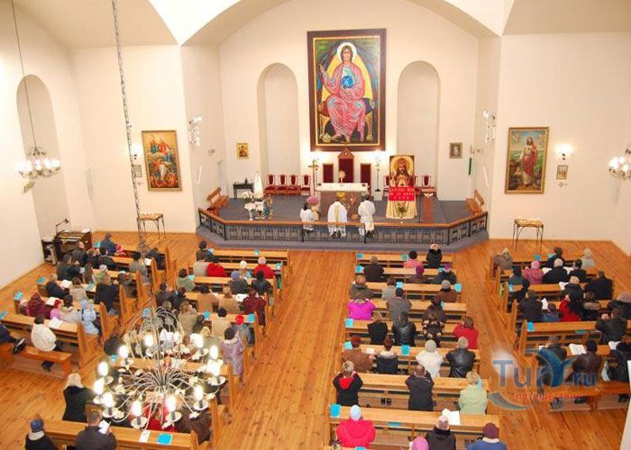 Католический приход существовал в Запорожье еще до революции. Единственный католический храм в Запорожье закрыли в 30-х, а в 50 годах прошлого столетия разрушили. На его месте построили завод. 7 августа 2004 года состоялось открытие нового храма Бога Отца Милосердного. Храм Бога Отца олицетворяет собою главный западный архитектурный тип церквей- базилик, в переводе с греческого базилика переводится как царский гротик. Классически строгое внутреннее убранство. Красота и гармония линий. Но в каждую, казалось незначительную деталь интерьера храма, вложен труд большого количества людей. Храм – необычный, единственный в Восточной Европе воистину стал архитектурной достопримечательностью города.