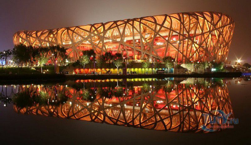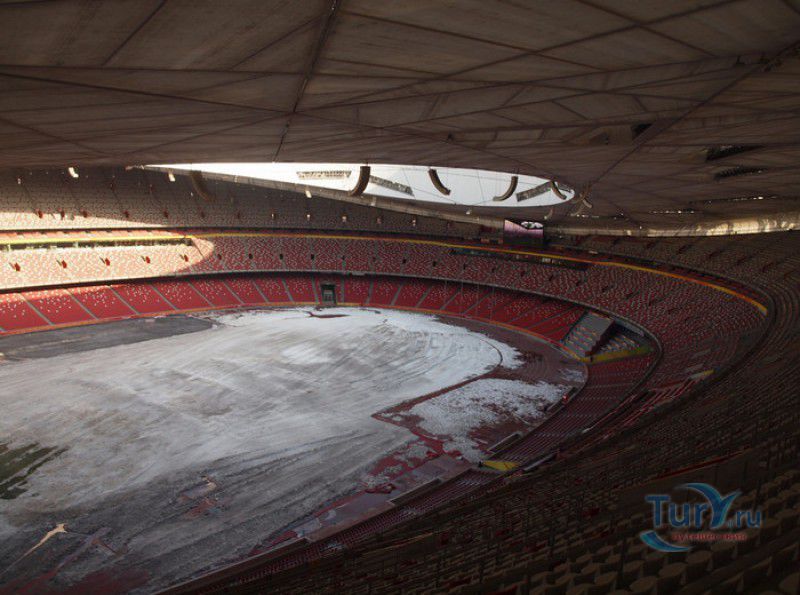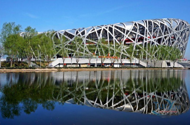 Пекинский Национальный Стадион (Птичье Гнездо) расположен в Пекине, в районе Чаоянь, на территории Олимпийской деревни. Стадион был построен специально для проведения Летних Олимпийских игр 2008 года. Здание стадиона, своей формой напоминающее птичье гнездо, выполненное из стали и бетона, построено по проекту швейцарских архитекторов Жака Херцога и Пьера де Мерона, художественным консультантом по проекту стал известный китайский художник Ай Вэйвэй. Стадион состоит из двух конструкций - бетонная "чаша" с трибунами и внешний стальной каркас. Птичье Гнездо занимает территорию площадью 258000 квадратных метров, способен вместить 91000 зрителей (80000 постоянных и 11000 временных мест). Самая высшая точка стадиона находится на высоте 68,5 метров над землёй, самая низкая - на высоте 42,8 метров, ряды трибун спланированы таким образом, что с любого места отлично видно всё, что происходит на поле. В верхней части металлического каркаса натянута прозрачная водонепроницаемая плёнка, что даёт возможность проникать солнечному свету на трибуны и травяной газон. Корме того, такое покрытие за счёт прочности и лёгкости материала не утяжеляет стальную конструкцию стадиона. После закрытия Олимпийских игр стадион используется для проведения спортивных чемпионатов по футболу, лёгкой атлетике, гимнастике как национального, так и международного уровней, а также культурно-массовых мероприятий. На стадионе проходят концерты, театральные постановки, фестивали и выставки. В зимний период Птичье Гнездо становится ледовой ареной, здесь можно покататься на коньках, заняться горными лыжами, биатлоном, фигурным катанием. Планируется, что в Пекинском Национальном стадионе будут проходить церемонии открытия и закрытия Зимних Олимпийских игр 2022 года, принимать которые будет Пекин.