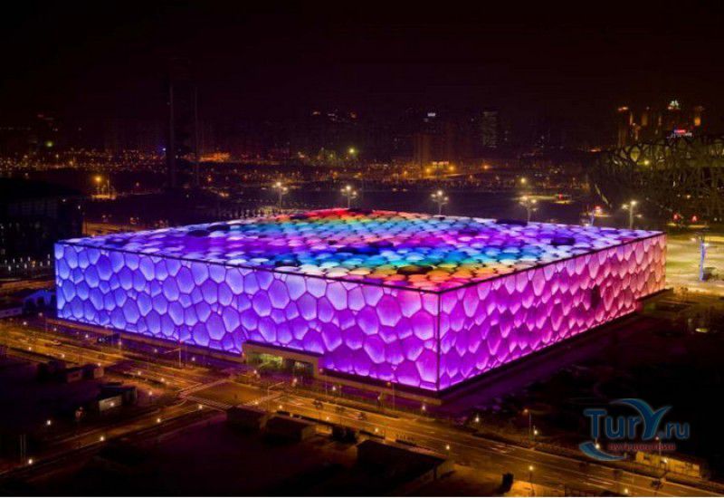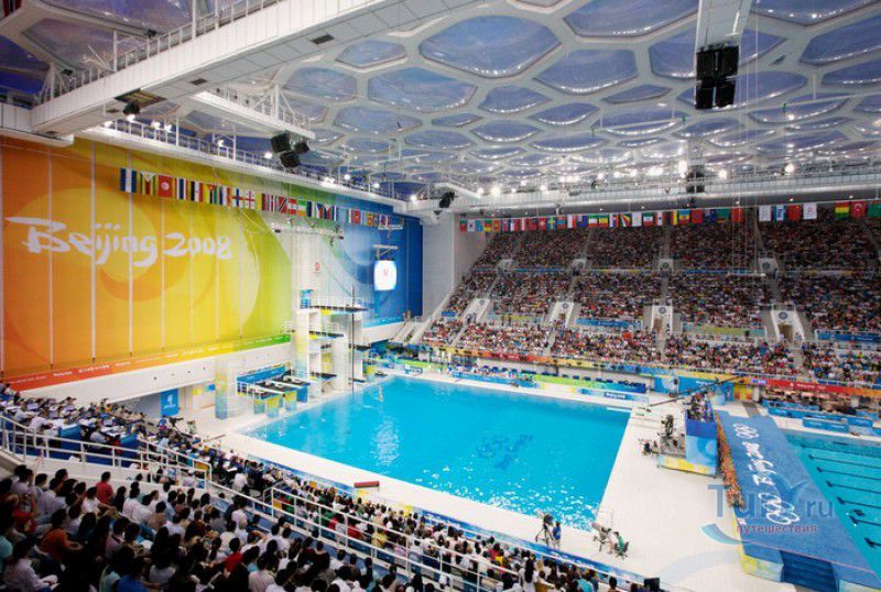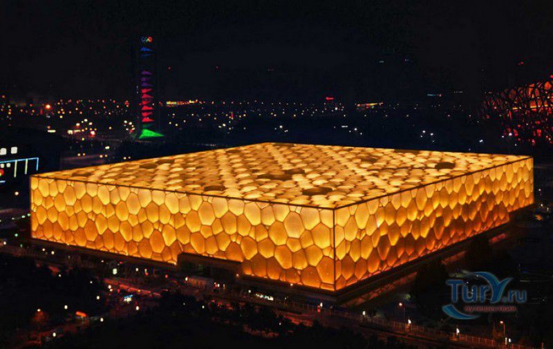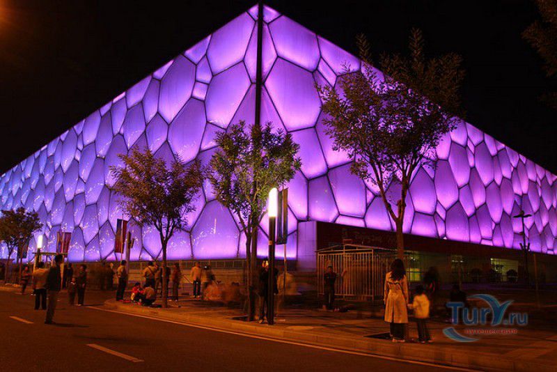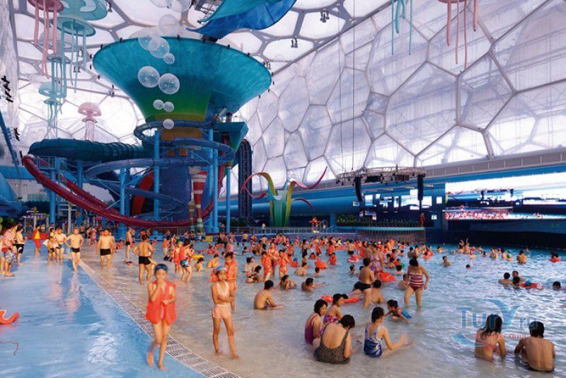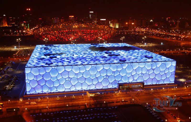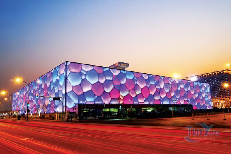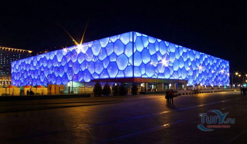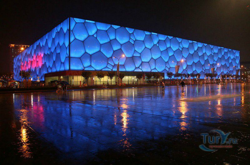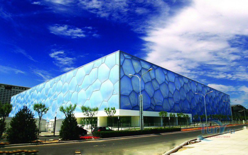Национальный Центр Водных Видов Спорта (Водный Куб) расположен в Пекине, на территории Олимпийской деревни, рядом с Пекинским Национальным стадионом Птичье Гнездо. Водный Центр был построен для проведения соревнований по плаванию во время летних Олимпийских игр 2008 года, проходивших в Пекине. Строительные работы выполнялись австралийской компанией PTW, велись с декабря 2003 года по январь 2008 года. Общая площадь застройки составляет около 100000 квадратных метров, ширина и длина здания - 177 метров, высота - 30 метров. Многие технологии и материалы, используемые при создании Водного Центра являются уникальными и впервые были применены на этом строительном объекте. Стальной каркас, являющийся "скелетом" сооружения, покрыт высокопрочной мембраной из этилентетрафторэтилена, состоящей из пневматических подушек разных размеров, напоминающих мыльные пузыри. Внешняя поверхность аккумулирует солнечную энергию, которая используются для подогрева воды в бассейнах. В то же время, благодаря отражающему покрытию мембраны, даже в самые жаркие дни в помещениях комплекса сохраняется комфортная температура воздуха. Водный Куб способен вместить до 17000 зрителей (6000 постоянных и 11000 временных мест), в нём есть бассейн для соревнований по плаванию, бассейн для подводного плавания с трамплинами для прыжков воду и тренировочный плавательный бассейн. Во время Олимпийских игр в Водном Кубе проходили соревнования по плаванию, прыжкам в воду и синхронному плаванию, были установлены 25 мировых рекордов. В 2010 году в Национальном Центре Водных Видов Спорта был открыт Аквапарк Водный Куб, крупнейший в Китае. Его посетители словно оказываются в сказочном подводном мире, в окружении гигантских медуз, кораллов и тропических рыб. По всему периметру аквапарка течёт Ленивая река, центральную часть занимает огромный бассейн с искусственными волнами. Посреди бассейна установлена сцена, на которой проходят красочные шоу. В аквапарке оборудована детская зона с горками, аттракционами, опрокидывающими бочками и гейзерами. К услугам любителей острых ощущений - водные горки и аттракционы Торнадо, Пулевой водоворот, Водная петля, Скоростной спуск, Водоворот, Змеиный серпантин и другие. Посетители могут расслабиться в СПА-центре, посетить рестораны и бары, принять участие в весёлых конкурсах и розыгрышах призов. В Водном Кубе проходят выставки, театральные постановки, яркие шоу и концерты, в кинотеатре Театр Капель демонстрируют 3D и HD фильмы.