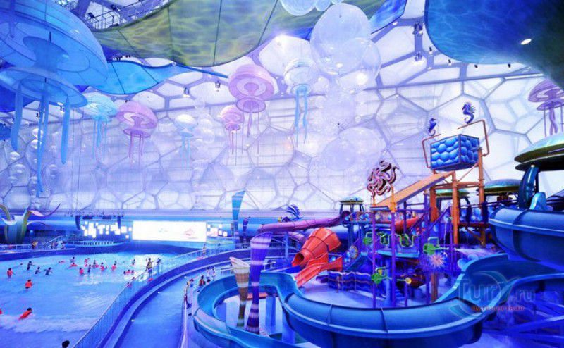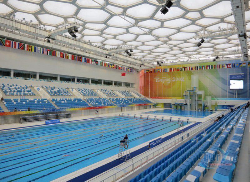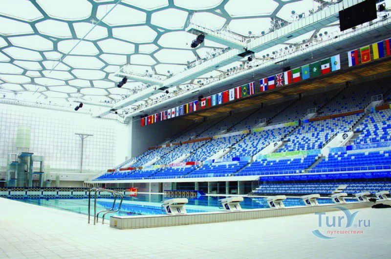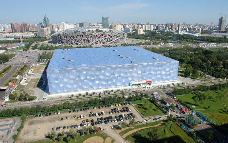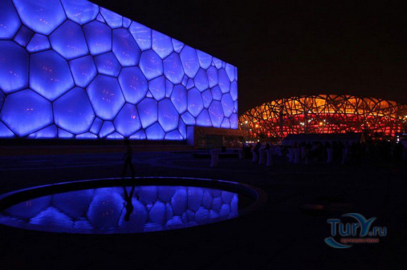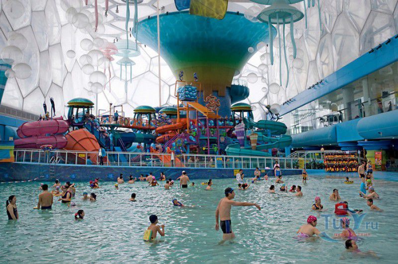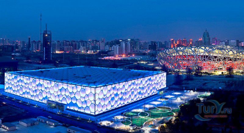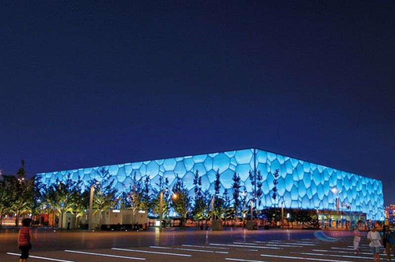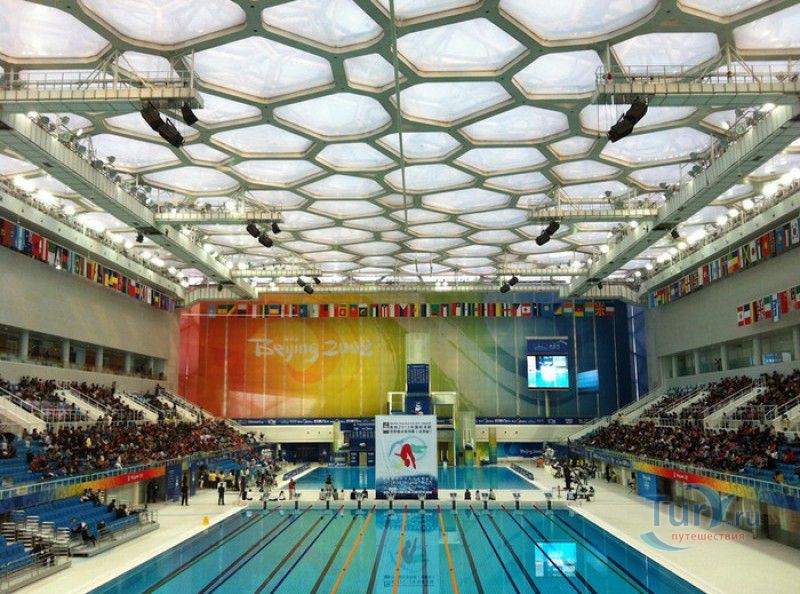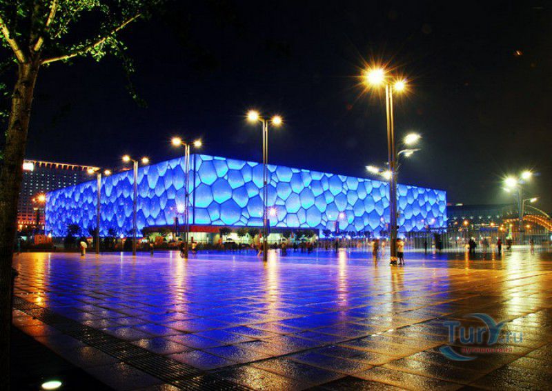Национальный Центр Водных Видов Спорта (Водный Куб) расположен в Пекине, на территории Олимпийской деревни, рядом с Пекинским Национальным стадионом Птичье Гнездо. Водный Центр был построен для проведения соревнований по плаванию во время летних Олимпийских игр 2008 года, проходивших в Пекине. Строительные работы выполнялись австралийской компанией PTW, велись с декабря 2003 года по январь 2008 года. Общая площадь застройки составляет около 100000 квадратных метров, ширина и длина здания - 177 метров, высота - 30 метров. Многие технологии и материалы, используемые при создании Водного Центра являются уникальными и впервые были применены на этом строительном объекте. Стальной каркас, являющийся "скелетом" сооружения, покрыт высокопрочной мембраной из этилентетрафторэтилена, состоящей из пневматических подушек разных размеров, напоминающих мыльные пузыри. Внешняя поверхность аккумулирует солнечную энергию, которая используются для подогрева воды в бассейнах. В то же время, благодаря отражающему покрытию мембраны, даже в самые жаркие дни в помещениях комплекса сохраняется комфортная температура воздуха. Водный Куб способен вместить до 17000 зрителей (6000 постоянных и 11000 временных мест), в нём есть бассейн для соревнований по плаванию, бассейн для подводного плавания с трамплинами для прыжков воду и тренировочный плавательный бассейн. Во время Олимпийских игр в Водном Кубе проходили соревнования по плаванию, прыжкам в воду и синхронному плаванию, были установлены 25 мировых рекордов. В 2010 году в Национальном Центре Водных Видов Спорта был открыт Аквапарк Водный Куб, крупнейший в Китае. Его посетители словно оказываются в сказочном подводном мире, в окружении гигантских медуз, кораллов и тропических рыб. По всему периметру аквапарка течёт Ленивая река, центральную часть занимает огромный бассейн с искусственными волнами. Посреди бассейна установлена сцена, на которой проходят красочные шоу. В аквапарке оборудована детская зона с горками, аттракционами, опрокидывающими бочками и гейзерами. К услугам любителей острых ощущений - водные горки и аттракционы Торнадо, Пулевой водоворот, Водная петля, Скоростной спуск, Водоворот, Змеиный серпантин и другие. Посетители могут расслабиться в СПА-центре, посетить рестораны и бары, принять участие в весёлых конкурсах и розыгрышах призов. В Водном Кубе проходят выставки, театральные постановки, яркие шоу и концерты, в кинотеатре Театр Капель демонстрируют 3D и HD фильмы.