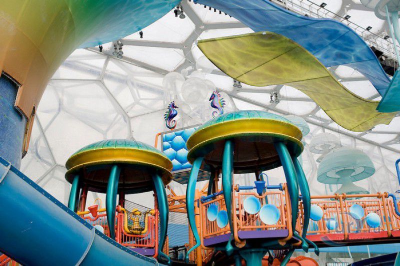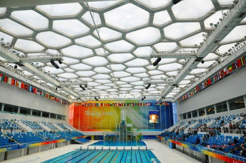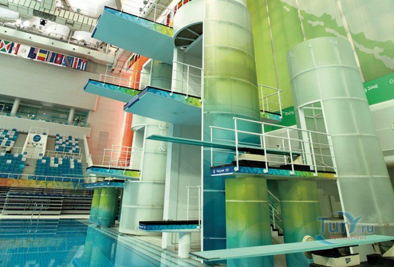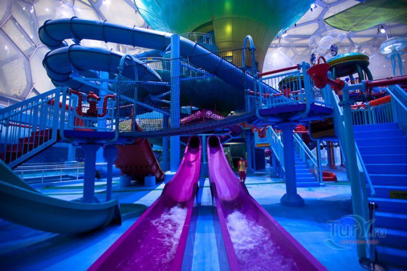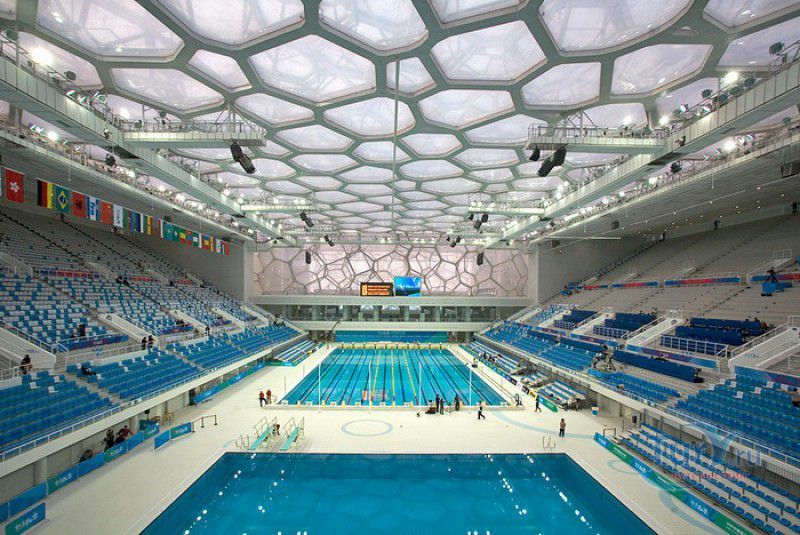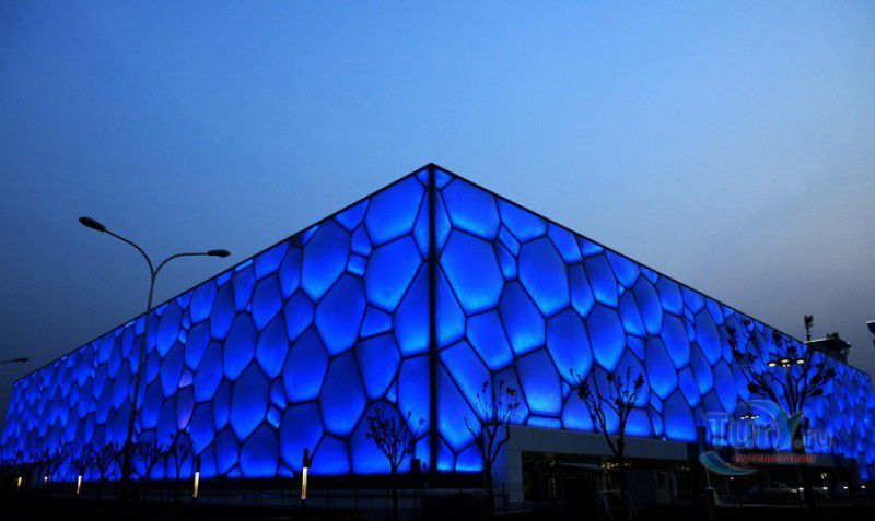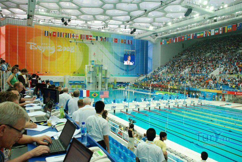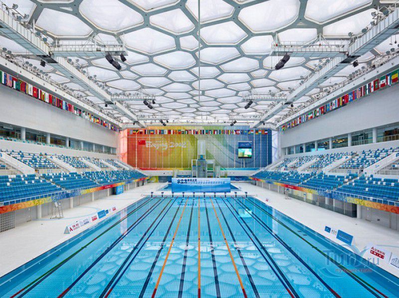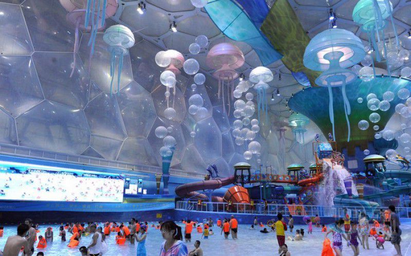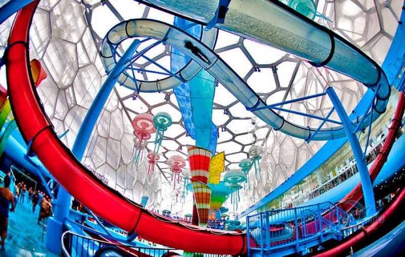 Национальный Центр Водных Видов Спорта (Водный Куб) расположен в Пекине, на территории Олимпийской деревни, рядом с Пекинским Национальным стадионом Птичье Гнездо. Водный Центр был построен для проведения соревнований по плаванию во время летних Олимпийских игр 2008 года, проходивших в Пекине. Строительные работы выполнялись австралийской компанией PTW, велись с декабря 2003 года по январь 2008 года. Общая площадь застройки составляет около 100000 квадратных метров, ширина и длина здания - 177 метров, высота - 30 метров. Многие технологии и материалы, используемые при создании Водного Центра являются уникальными и впервые были применены на этом строительном объекте. Стальной каркас, являющийся "скелетом" сооружения, покрыт высокопрочной мембраной из этилентетрафторэтилена, состоящей из пневматических подушек разных размеров, напоминающих мыльные пузыри. Внешняя поверхность аккумулирует солнечную энергию, которая используются для подогрева воды в бассейнах. В то же время, благодаря отражающему покрытию мембраны, даже в самые жаркие дни в помещениях комплекса сохраняется комфортная температура воздуха. Водный Куб способен вместить до 17000 зрителей (6000 постоянных и 11000 временных мест), в нём есть бассейн для соревнований по плаванию, бассейн для подводного плавания с трамплинами для прыжков воду и тренировочный плавательный бассейн. Во время Олимпийских игр в Водном Кубе проходили соревнования по плаванию, прыжкам в воду и синхронному плаванию, были установлены 25 мировых рекордов. В 2010 году в Национальном Центре Водных Видов Спорта был открыт Аквапарк Водный Куб, крупнейший в Китае. Его посетители словно оказываются в сказочном подводном мире, в окружении гигантских медуз, кораллов и тропических рыб. По всему периметру аквапарка течёт Ленивая река, центральную часть занимает огромный бассейн с искусственными волнами. Посреди бассейна установлена сцена, на которой проходят красочные шоу. В аквапарке оборудована детская зона с горками, аттракционами, опрокидывающими бочками и гейзерами. К услугам любителей острых ощущений - водные горки и аттракционы Торнадо, Пулевой водоворот, Водная петля, Скоростной спуск, Водоворот, Змеиный серпантин и другие. Посетители могут расслабиться в СПА-центре, посетить рестораны и бары, принять участие в весёлых конкурсах и розыгрышах призов. В Водном Кубе проходят выставки, театральные постановки, яркие шоу и концерты, в кинотеатре Театр Капель демонстрируют 3D и HD фильмы.