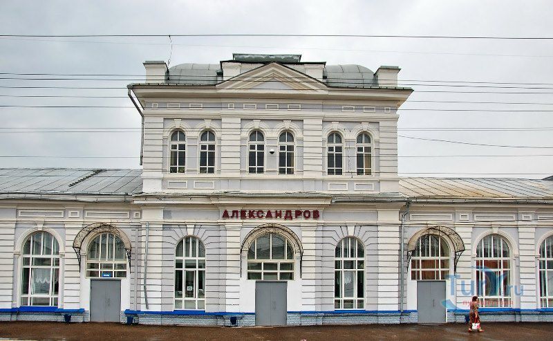 В 1903 году в архитектурный ансамбль станции Александров дополнило каменное здание вокзала. Оно стало одним из наиболее представительных общественных зданий города. В его эклектичных формах преобладают формы классицизма. В 1904 году рядом с вокзалом был построен Храм Преподобного Серафима Саровского Чудотворца. Построенный в начале XX века и сохранившийся до наших дней, вокзал дал начало новой Комсомольской площади.