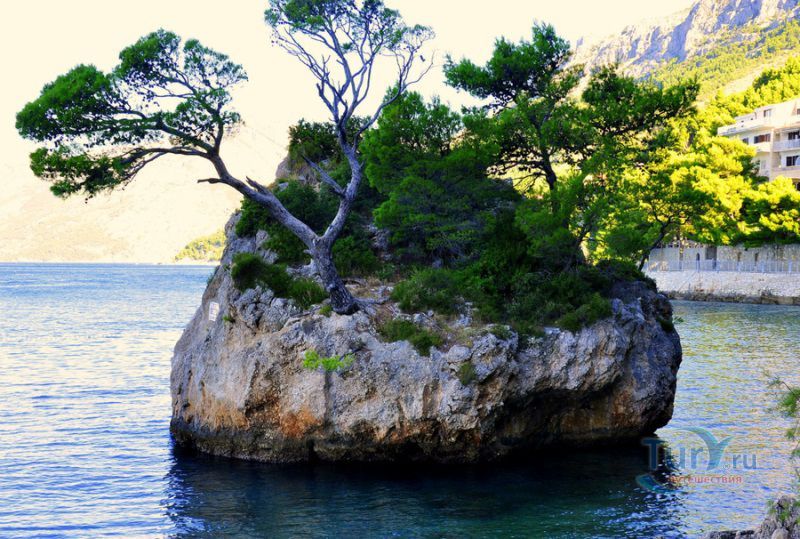 представляет собой обломок скалы, который когда-то скатился с гор Биоково прямо в море. Теперь он зарос соснами, которые, кажется, растут прямо из моря. Знаменитый обломок скалы находится под защитой как природный памятник.
