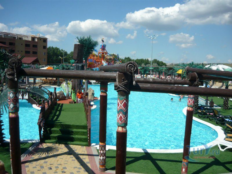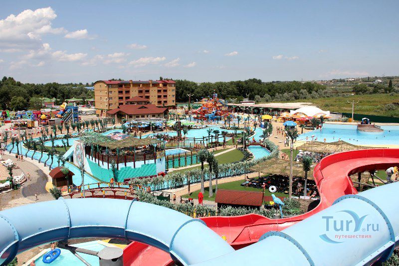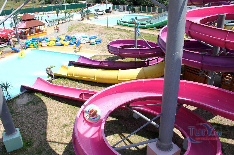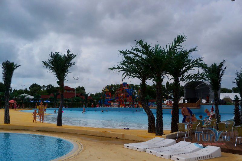Аквапарк включает в себя разнообразнейшие водные развлечения для взрослых и детей. Всего 24 горки: "Камикадзе", "Бумеранг", "Тобоган Д, Е, Ф", "Супербол" и многие другие, общей протяженностью более 2 км спусков. 10 бассейнов: "Развлекательный", "Ленивый", "Медленная река", "Гидромассажный", "Детский", Приводнения "Супербол/Бумеранг", "Мелкий", Приводнения "Твистер/Камикадзе", "Прыжковый", Приводнения "Рафтинг семейный", "Волновой". Можно свершить сплав на четырехместных баллонах-рафтах - семейный рафтинг с высоты 6 этажного дома. Детей ждут всевозможные сюрпризы, детский комплекс "Сезон дождей", где водяные завесы и водометы, лабиринты и лестницы выведут их на интересные горки. На вершине комплекса расположена бочка, которая заполняется водой и при наполнении переворачивается.