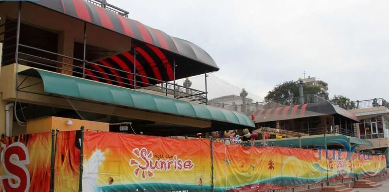 Ночной клуб Санрайз расположен на набережной Анапы. Это потрясающее место, оформленное в современном восточном стиле. За высокими ограждениями происходят невообразимые события клубной жизни: обновляемая шоу программа, приглашенные DJ и звезды эстрады, зажигательные ритмы RnB и легкой клубной музыки; сумасшедшие вечеринки с огненным стриптиз-шоу;блюда на любой вкус, большой ассортимент экзотических коктейлей, выполненных профессиональными виртуозами-барменами; отличный кальян-бар и многое другое.