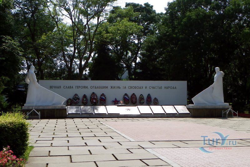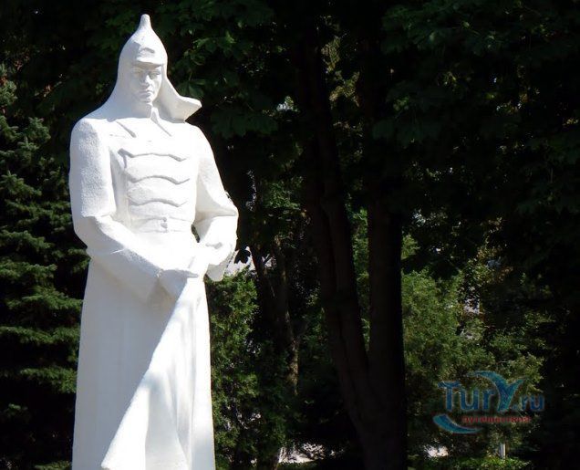 Справа от вечного огня находится еще один памятник. Это памятник воинам, исполнявшим интернациональный долг в Афганистане. Он был открыт в июне 1992 года. Следует отметить, что это первый памятник на Кубани и один из первых в России, посвященный афганским событиям. Памятник изготовлен необычным способом - "медной выколотки", т.е. из медных листов собран каркас и заполнен бетоном. Выполнен он в виде скорбящей фигуры воина, сидящего на камне. На коленях у него лежит автомат, в котором, видимо, не осталось ни одного патрона, в руке - пустая фляжка. Под ногами - земля разорванная снарядами, на лице - боль и обида за погибших друзей.