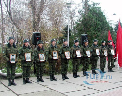Напротив расположен Памятный знак воинам, погибшим при исполнении правительственного задания в Чеченской республике. Он был открыт 28 июня 1998 года по инициативе Комитета солдатских матерей. Представляет собой мемориальную плиту, разорванную на 2 части. Стыкующиеся края плит серого и красного гранита имеют неровные очертания и символизируют большую рваную незаживающую рану. Серый цвет символизирует память, красный - пролитая кровь. В разрыве плиты, как подсвечники, расположены 3 пустые гильзы. На левой половине надпись: "Анапчанам павшим при выполнении воинского долга в Чеченской Республике". На правой - перечислены 16 фамилий не вернувшихся обратно анапчан.