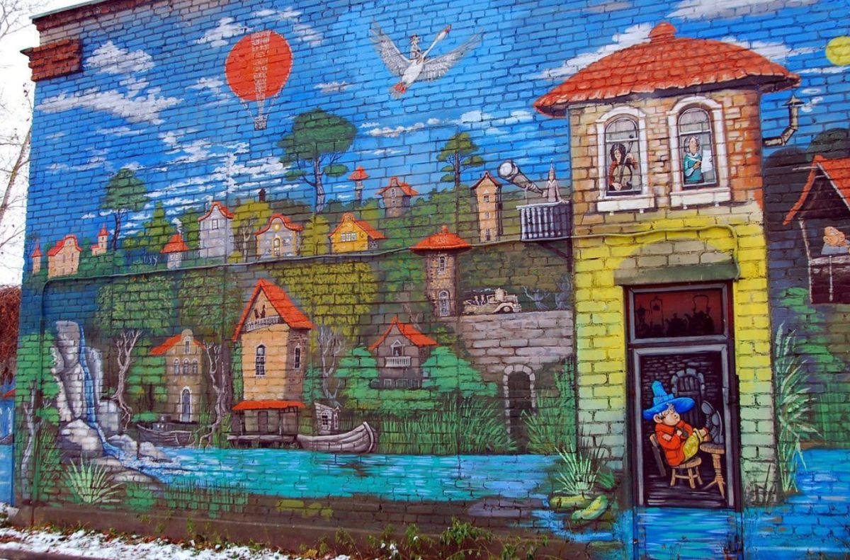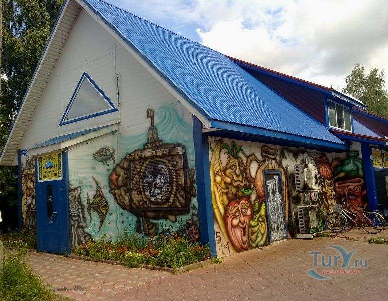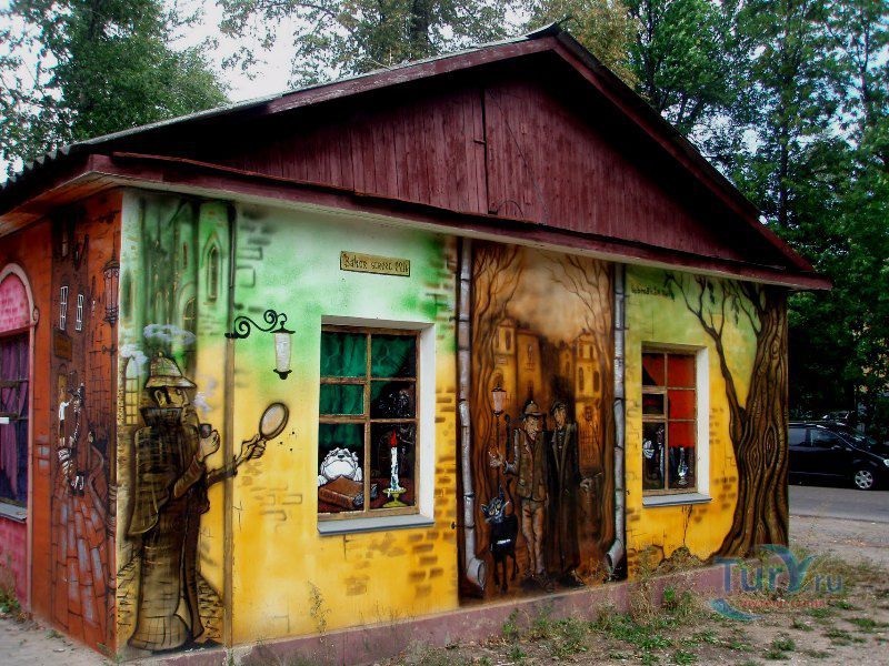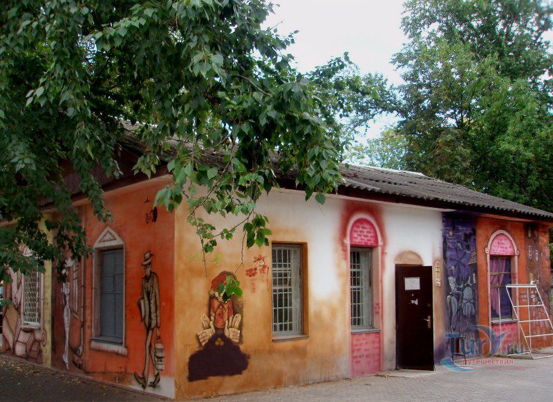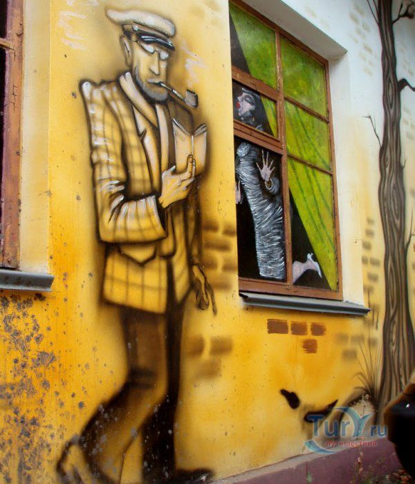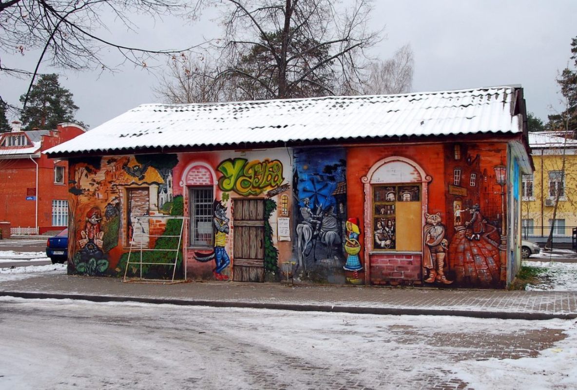 Достаточно интересные настенные рисунки встречаются по всему городу в самых неожиданных местах с различной тематикой, сохранилась даже "роспись" Советского периода. Самым интересным зданием является книжный магазин на улице Сахарова, дом 2. Маленький, но со всех сторон украшенных "росписями".