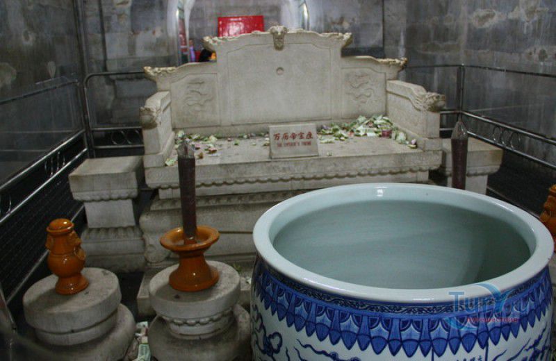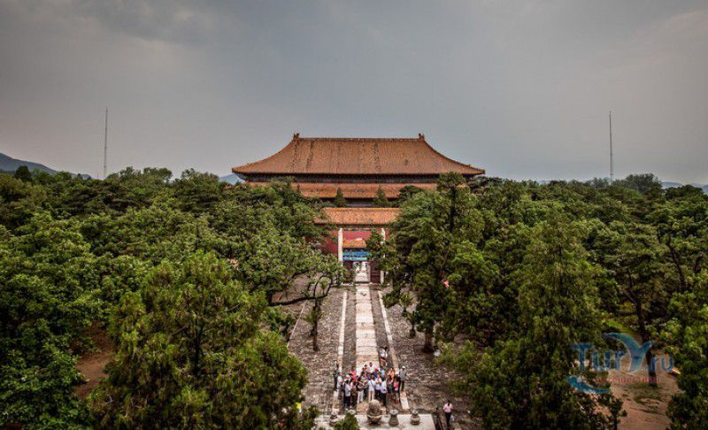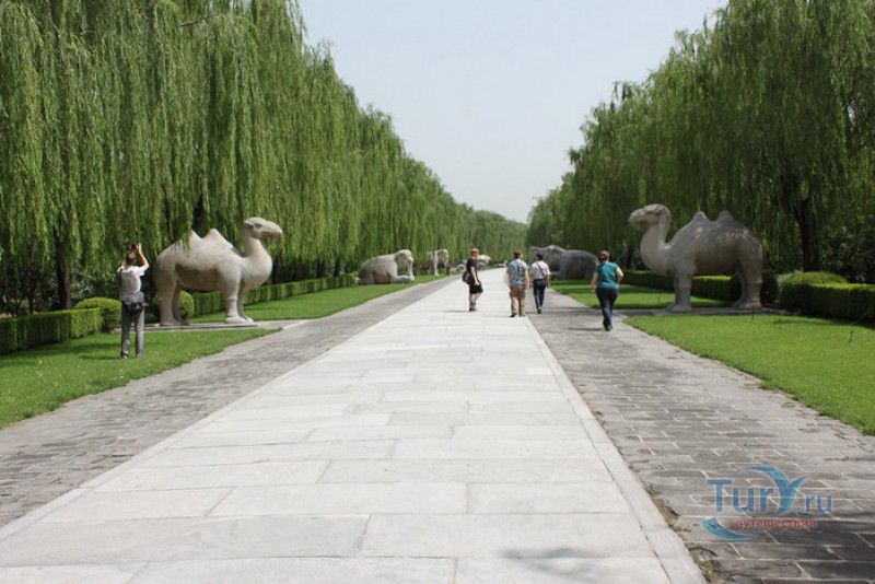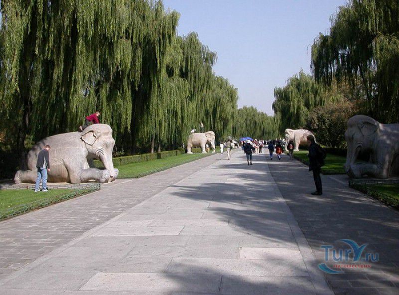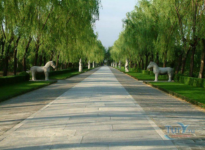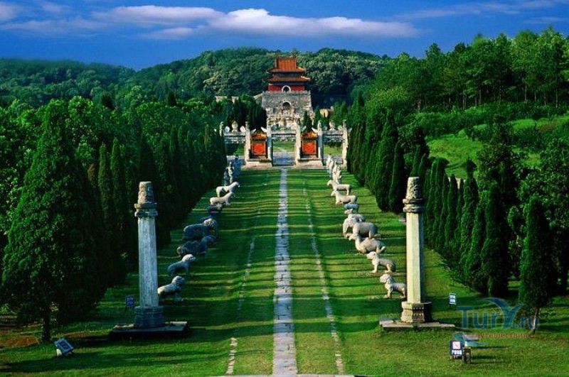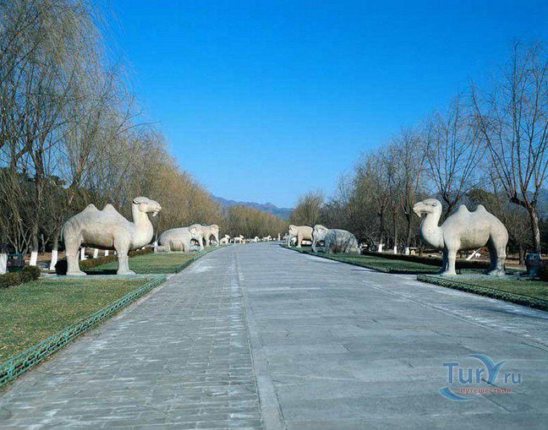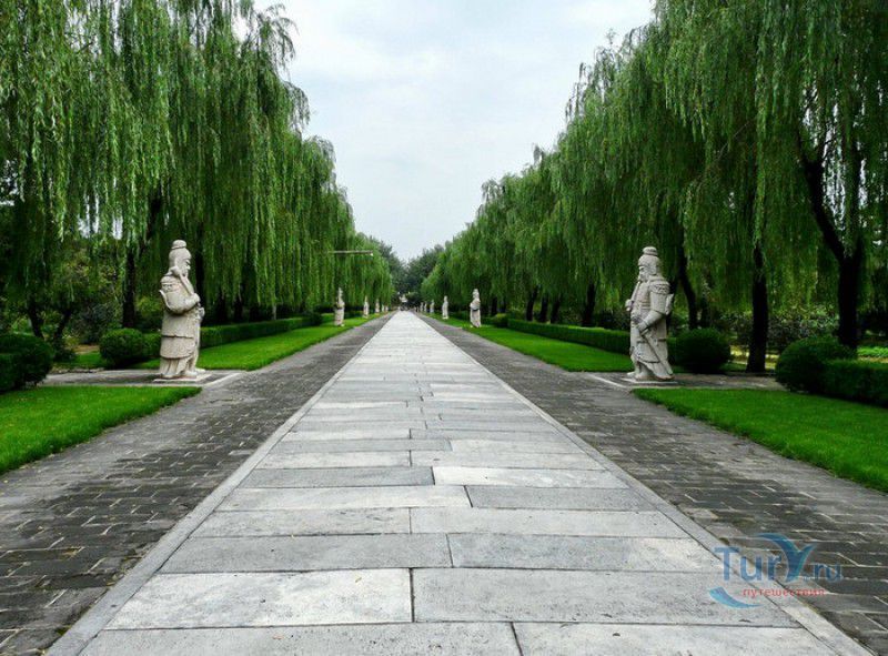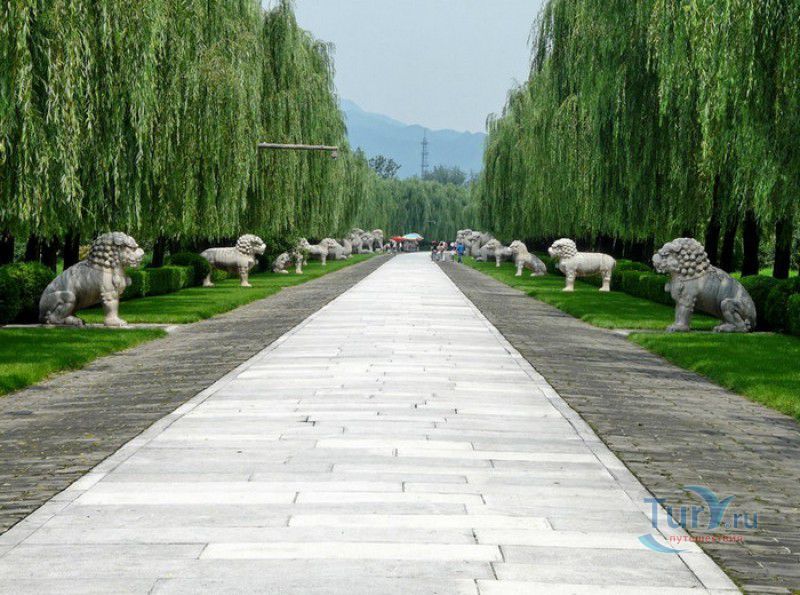 Гробницы Императоров Династии Мин (Шисаньлин) расположены в 50 км на северо-запад от Пекина, в пригороде Чанпин, у подножия горы Тяньшоу. На территории площадью около 80 квадратных километров расположены 13 гробниц императоров китайской династии Мин. Строительство королевских гробниц Мин было начато в 1409 году, когда император Чжу Ди (более известный как Юнлэ) избрал это место для возведения своего мавзолея. За последующие 230 лет здесь были построены 12 императорских мавзолеев и 7 гробниц для императорских наложниц и евнухов. Комплекс отгорожен от глаз "простых смертных" высокой каменной стеной. Все погребальные курганы имеют круглую пирамидальную форму, отличаются друг от друга только размерами. Так, диаметр погребального холма императора Юнлэ (одного из самых могущественных императоров династии Мин) составляет 310 метров, окружность кургана около километра. Императорские гробницы имеют схожую структуру - длинная дорога, ведущая к главному комплексу, огороженному стенами, двор с павильонами для погребальных церемоний и жертвоприношений. Из 13 императорских мавзолеев археологами была раскопана только гробница императора Ваньли - мавзолей Динлин. Раскопки велись в 1956 году, в ходе которых был обнаружен подземный дворец, состоящий из пяти залов с гигантскими мраморными арками, найдены саркофаги с останками императора и его жён, сокровища императорской казны и ритуальные предметы (золотые и нефритовые изделия, золотая корона, украшенная драгоценными камнями, головные уборы, кувшины и сосуды, фарфоровые вазы, чаши, богато вышитая одежда, курильницы, подсвечники и многое другое). Для посещения открыты внутренние дворы только у трёх гробниц - Чанлин, Жаолин и Динлин, в подземном дворце можно побывать лишь в Динлин. Все остальные гробницы закрыты для посетителей, археологические работы на территории некрополя прекращены. Священный путь протяжённостью 7 километров (главная дорога Шисаньлин) начинается от мемориальной арки из белого мрамора, построенной в 1540 году. Её высота - 12 метров, ширина - 29 метров, арку украшают барельефы с изображениями драконов, львов и цветов лотоса. На расстоянии около километра от арки стоят Великие Красные ворота - главный вход на территорию кладбища. Через эти ворота следовали в загробный мир императоры и их жёны, проходила похоронная процессия и провозились сокровища, которые почившие правители "забирали с собой" в мир иной. Следом за воротами, на расстоянии 500 метров, расположен павильон Божественных заслуг, построенный в 1435 году. Внутри павильона установлена 7,9-метровая стела с выбитым на фронтоне перечнем заслуг императора Юнлэ (чтобы перечислить его достижения понадобилось около 3000 слов). От павильона проложена аллея протяженностью 800 метров, с установленными с обеих сторон статуями животных, мифических существ, чиновников, офицеров и министров, отличившихся при императорском дворе. Статуи животных установлены парами, напротив друг друга, при этом одна фигура стоит, вторая - сидит. Священный путь (Путь духов) заканчивается у Небесных врат, с обеих сторон которых установлены статуи фениксов и драконов, символизирующих власть, силу и благородство. Гробницы Императоров Династии Мин в Чанпине включены в 2003 году в список Всемирного наследия ЮНЕСКО в составе объекта "Гробницы императоров династий Мин и 