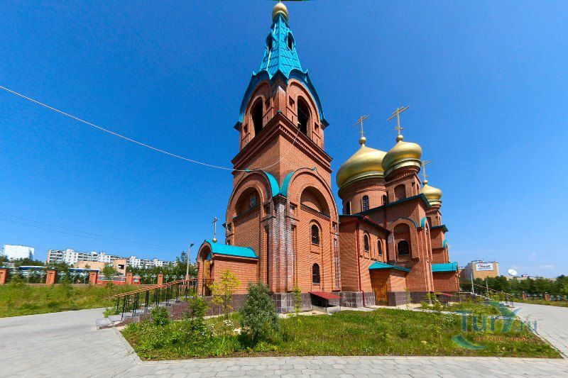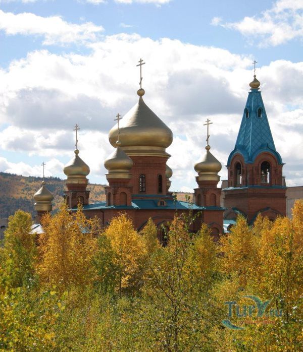 Собор Троицы Живоначальной - это первый православный храм в истории молодого города Тында. Он расположен недалеко от кинотеатра "Гилюй" и занимает центральное место в общей композиции центра города. Площадка под строительство была отведена еще в 1994 году. Активная стройка началась только в феврале 2001 года, и уже 28 октября 2001 года собор был освящен. Он построен с применением красного облицовочного кирпича. Имеет главное здание с пятью позолоченными куполами, а также пристройки, расположенные слева и справа от главного здания. В основу архитектурно-планировочного решения собора Троицы Живоначальной положена концепция сохранения внешнего облика и характера русской православной архитектуры.