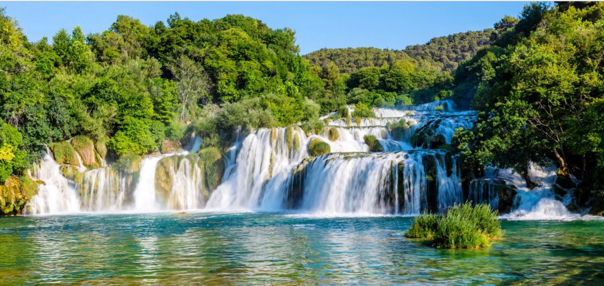 Каскадный водопад Скрадински Бук - это седьмой, последний, и самый длинный водопад на реке Крка. Водопад является одним из самых известных хорватских природных красот и самых красивых водопадов в Европе. Каскад длиной 800 метров состоит из 17 водопадов. Ширина водопада колеблется от 200 до 400 метров с общим перепадом высоты почти в 46 метров. Здесь воедино сливаются воды рек Крка и Чиколы. Этим необычайно прекрасным зрелищем можно полюбоваться с прогулочной тропы или со специально построенных деревянных мостков. Скрадински Бук - единственный водопад, в котором разрешено купаться. Посетители Национального парка Крка с радостью и большим удовольствие пользуются этой возможностью.