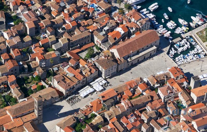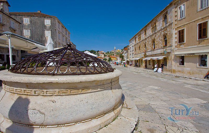 Площадь Святого Стефана является центральной площадью города Хвар и одной из старейших городских площадей Далмации. Площадь возникла на месте осушенной болотистой части залива, и была полностью вымощена камнем в 1780 году. На восточном краю площади стоит главный символ города - собор Святого Стефана. Перед собором, посреди площади, расположен городской колодец 1520 года, закрытый ажурной решеткой. На острове всегда были проблемы с пресной водой, поэтому к колодцам здесь почтительное отношение. Проблема нехватки пресной воды была решена только в 1987 году, после прокладки по дну моря водопровода с материка. До этого времени для питья использовалась очищенная дождевая вода, а специальные корабли в цистернах доставляли с материковой Далмации питьевую воду на все пристани острова.