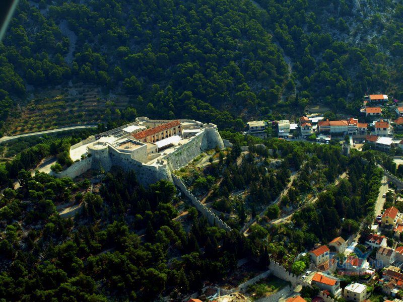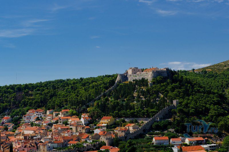Испанская крепость расположена на горе Святого Николы и гордо возвышается над городом Хвар. Она является главной достопримечательностью Хвара и, даже, украшает городскую символику - герб и флаг, на которых изображено, как над крепостью на золотом троне располагается покровитель Хвара святой Стефан, христианский апостол и перво мученик, с поднятыми в благословении перстами. Перед крепостью видны старые городские стены с башнями, собор святого Стефана на городской площади и здание старой верфи - Арсенала, над синей полосой моря.