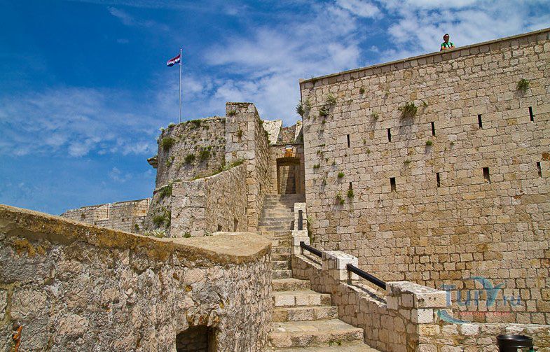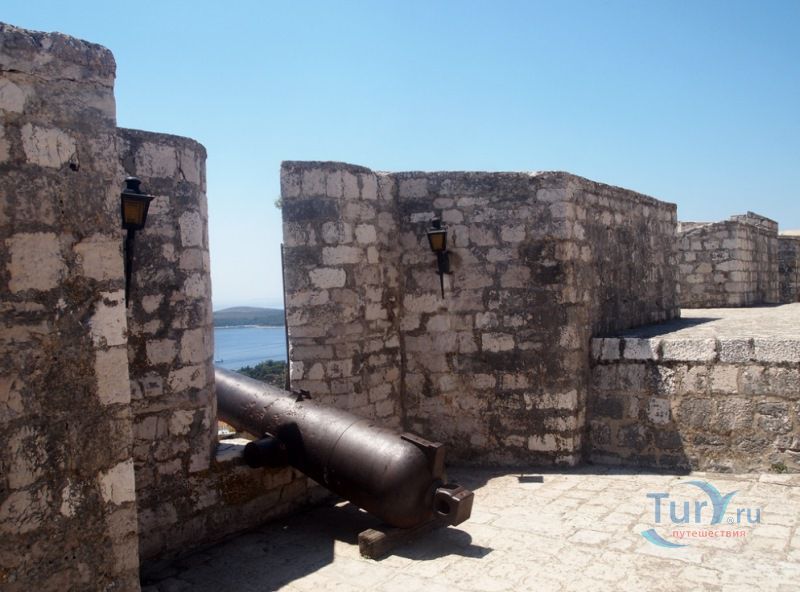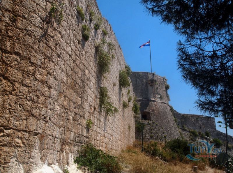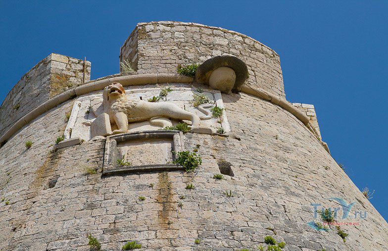 Крепость была построена в начале XVI века. Построили ее венецианцы на 88-метровом холме у бухты в качестве военных укреплений и тогда же обнесли город стенами. В 1571 году остров был разорен турками, защитные укрепления понесли серьезные разрушения. Вновь отстроенная крепость была полностью разрушена в 1579 году в результате взрыва пороховых складов. Восстанавливая крепость второй раз горожане усилили основание стен, а для дополнительной защиты крепости и города, засадили все склоны холма кактусами и агавами, создающими непроходимое препятствие для быстрого штурма городских стен. Крепость отлично восстановлена, с воссозданием множества мелких внешних деталей - кованных фонарей, черепичных крыш внутренних строений, каменной мозаики дорожек и смотровых площадок. Главную башню украшает пятиметровый барельеф с солидным влево-ходящим львом, символом апостола Марка - крылатым львом с книгой, являющимся гербом Венеции. Чуть меньший по размерам право-ходящий вариант охраняет дверь в крепостной стене. В 1810 году во времена Наполеоновских войн крепость была расширена.