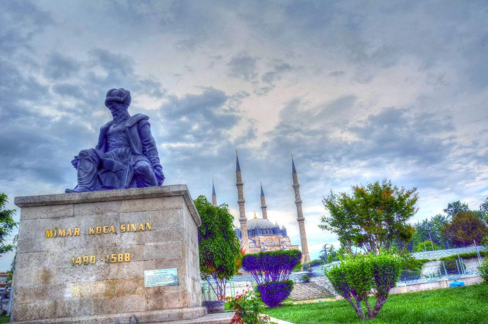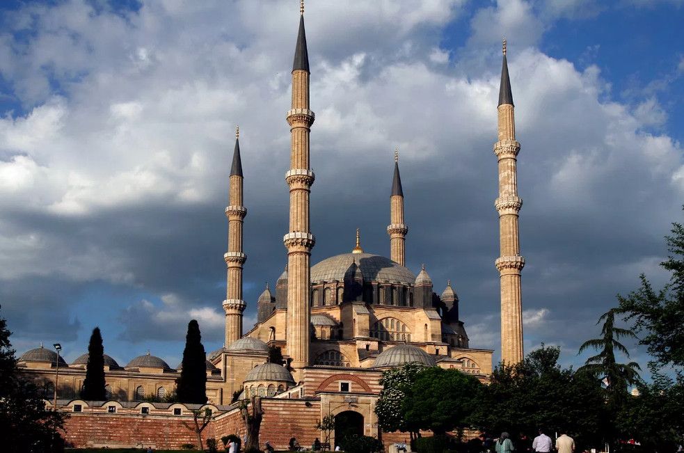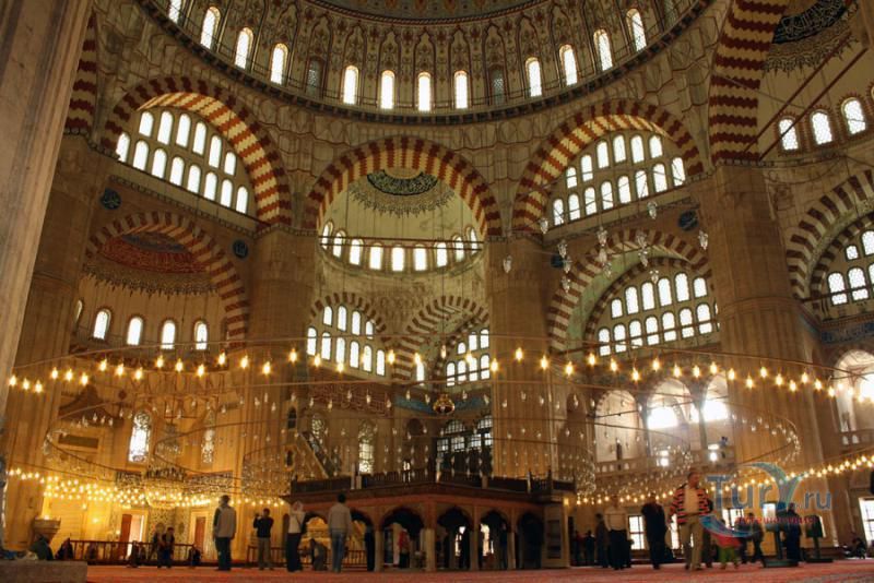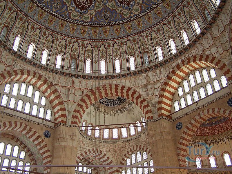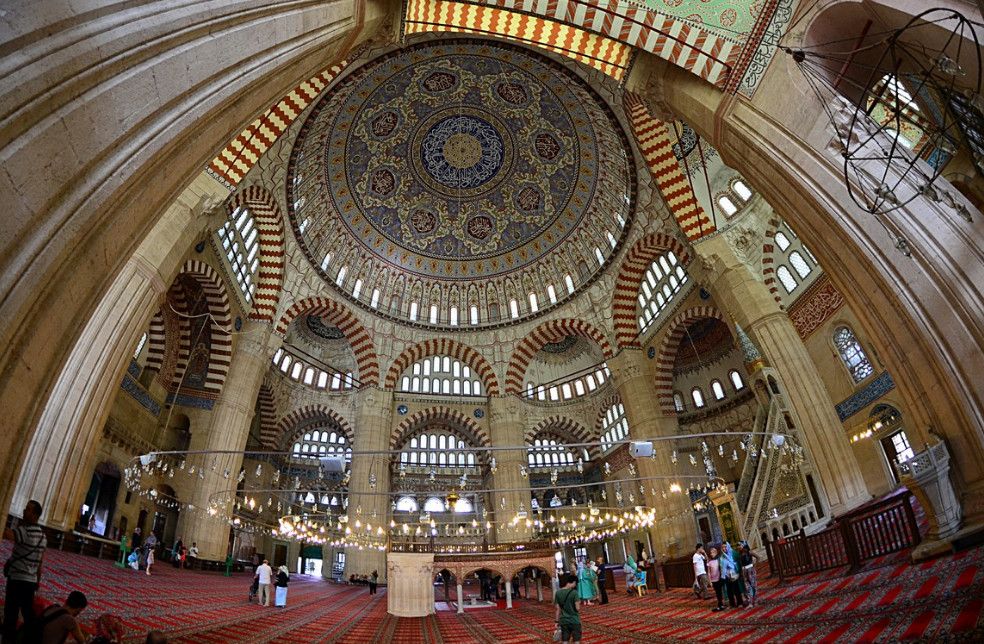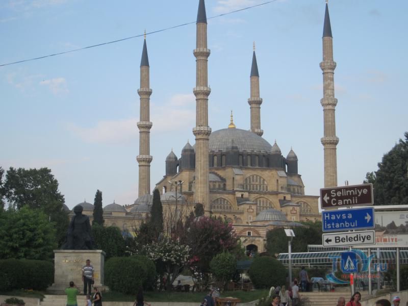 Мечеть Селимие - один из самых выдающихся архитектурных шедевров исламской культуры. Этот храмовый комплекс включает в себя школу, библиотеку, больницу, бани, медресе, часовую комнату, несколько магазинов. Сооружение было построено в 1568-1574 годах знаменитым архитектором Синаном, который считал эту мечеть своей лучшей работой. Когда строился этот архитектурный шедевр зодчему было около 90 лет. Мечеть Селимие была построена по распоряжению Селима, сына султана Сулеймана и его жены Роксоланы. При строительстве мечети Селимие Синан создал уникальную восьмиугольную систему поддержки сводов, которая состоит из восьми надежных колонн. Восьмигранник позволил сделать их не очень массивными и, отодвинув к стене, расчистить центральное пространство мечети. Небольшие полукупола, которые чередуются с простенками, почти незаметны снаружи. По фасаду очень отчетливо видно восемь контрфорсов, которые придают круговой вид всему сооружению. При первом осмотре можно не заметить прямоугольную планировку мечети, которая замаскирована оригинальными архитектурными решениями. В самом центре мечети расположен великолепный фонтан, покрытый интересной резной крышей, довольно редкой для культового сооружения тех времен. Четыре минарета высотой около восьмидесяти метров, установлены по углам мечети. Они практически вдвое выше центрального купола и являются вторыми в мире по высоте после минаретов Мекки. Внутри минаретов находятся красивые и изолированные друг от друга винтовые лестницы, по которым можно забраться на балконы (их по три у каждого минарета). Свет в помещение мечети поступает через 24 окна, расположенных в арках. Внутренняя отделка здания искусно украшена пурпурным мрамором, деревянной резьбой и каллиграфией. В молельном зале над шестью мраморными колонами расположены пять куполов. Кроме того, он украшен витражами и резьбой по мрамору. В декоративном оформлении внутреннего двора использован мягкий эдирнейский красный песчаник. Вокруг михраба и в султанской галерее слева от него находятся прекрасные изникские изразцы. Мечеть Селимие, построенная из тесаного камня, находится на небольшом возвышении. В окружении четырех высоких, устремленных в небо минаретов, она доминирует над всеми городскими сооружениями и отлично видна отовсюду. Вход в мечеть разрешен и для немусульман. Мечеть Селимие входит в число основных достопримечательностей не только города Эдирне, но и всей Турции. В 2011 году мечеть Селимие внесена в список Всемирного наследия ЮНЕСКО.