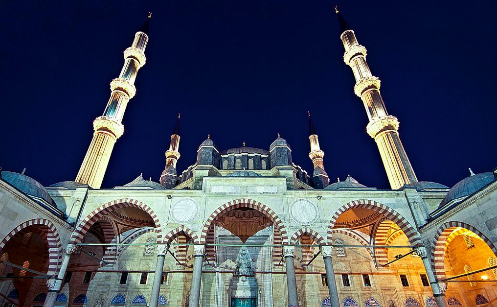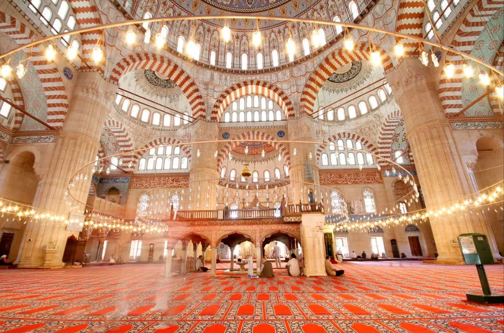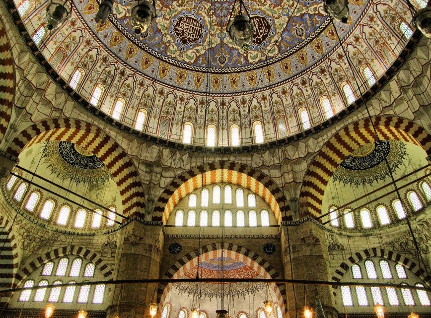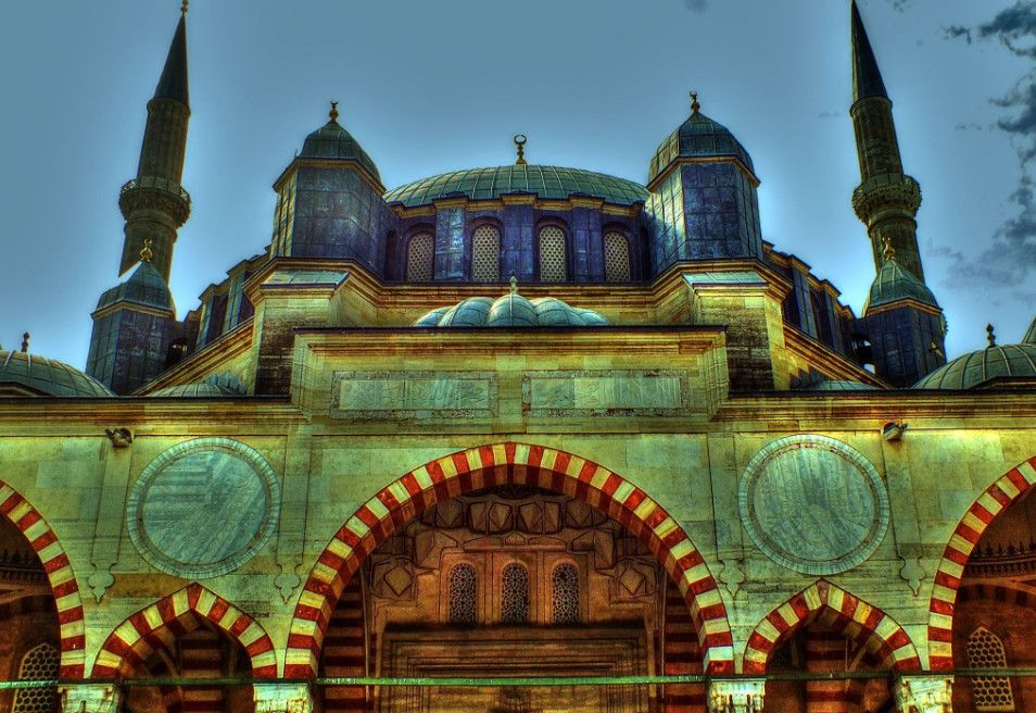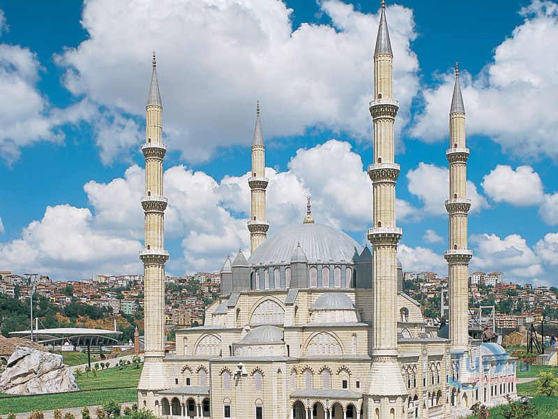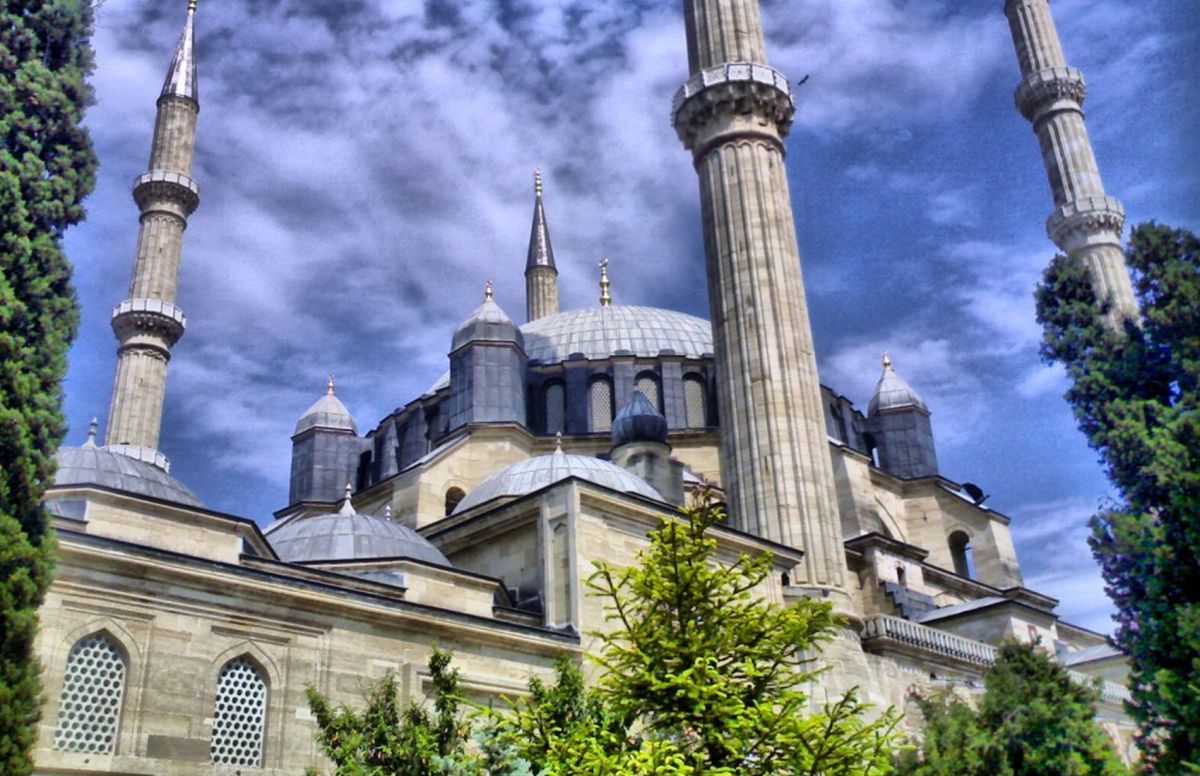 Мечеть Селимие - один из самых выдающихся архитектурных шедевров исламской культуры. Этот храмовый комплекс включает в себя школу, библиотеку, больницу, бани, медресе, часовую комнату, несколько магазинов. Сооружение было построено в 1568-1574 годах знаменитым архитектором Синаном, который считал эту мечеть своей лучшей работой. Когда строился этот архитектурный шедевр зодчему было около 90 лет. Мечеть Селимие была построена по распоряжению Селима, сына султана Сулеймана и его жены Роксоланы. При строительстве мечети Селимие Синан создал уникальную восьмиугольную систему поддержки сводов, которая состоит из восьми надежных колонн. Восьмигранник позволил сделать их не очень массивными и, отодвинув к стене, расчистить центральное пространство мечети. Небольшие полукупола, которые чередуются с простенками, почти незаметны снаружи. По фасаду очень отчетливо видно восемь контрфорсов, которые придают круговой вид всему сооружению. При первом осмотре можно не заметить прямоугольную планировку мечети, которая замаскирована оригинальными архитектурными решениями. В самом центре мечети расположен великолепный фонтан, покрытый интересной резной крышей, довольно редкой для культового сооружения тех времен. Четыре минарета высотой около восьмидесяти метров, установлены по углам мечети. Они практически вдвое выше центрального купола и являются вторыми в мире по высоте после минаретов Мекки. Внутри минаретов находятся красивые и изолированные друг от друга винтовые лестницы, по которым можно забраться на балконы (их по три у каждого минарета). Свет в помещение мечети поступает через 24 окна, расположенных в арках. Внутренняя отделка здания искусно украшена пурпурным мрамором, деревянной резьбой и каллиграфией. В молельном зале над шестью мраморными колонами расположены пять куполов. Кроме того, он украшен витражами и резьбой по мрамору. В декоративном оформлении внутреннего двора использован мягкий эдирнейский красный песчаник. Вокруг михраба и в султанской галерее слева от него находятся прекрасные изникские изразцы. Мечеть Селимие, построенная из тесаного камня, находится на небольшом возвышении. В окружении четырех высоких, устремленных в небо минаретов, она доминирует над всеми городскими сооружениями и отлично видна отовсюду. Вход в мечеть разрешен и для немусульман. Мечеть Селимие входит в число основных достопримечательностей не только города Эдирне, но и всей Турции. В 2011 году мечеть Селимие внесена в список Всемирного наследия ЮНЕСКО.